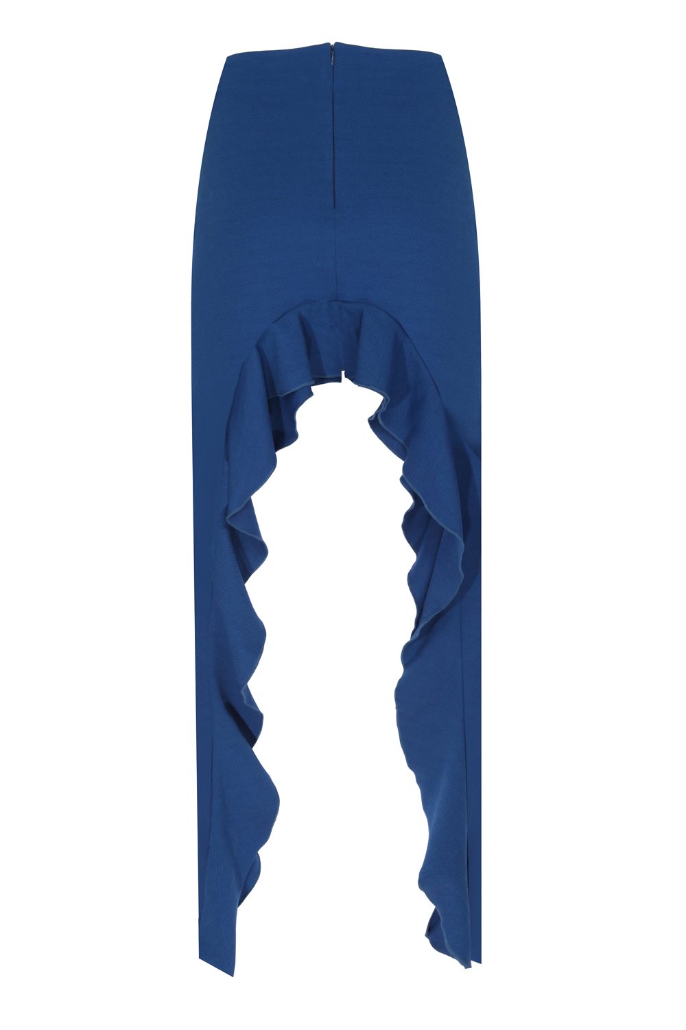 Etekleri Fırfırlı, Asimetrik Kesim, Mini Boy, Streç Kumaş, Gizli Fermuarlı, Yüksek Bel Etek.