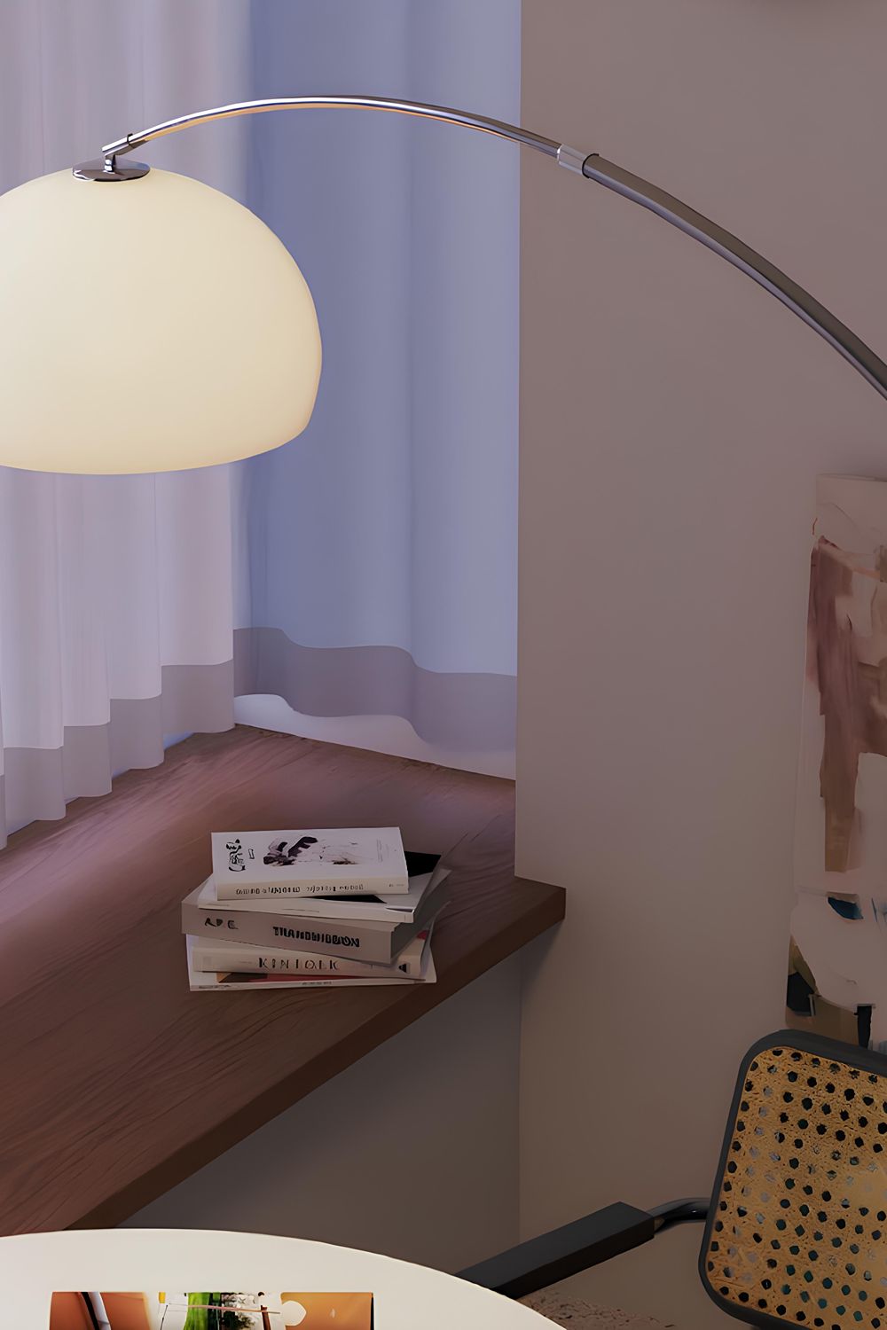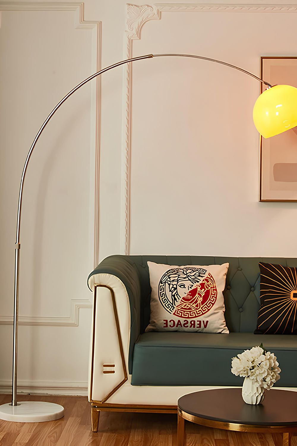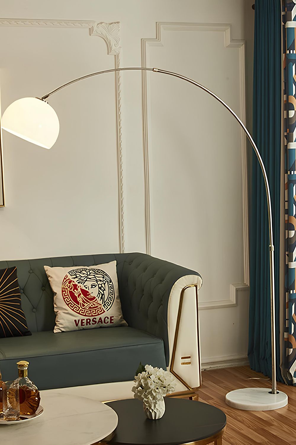 Deve Boynu Pleksi Başlık Lambader modern tasarımı ve pleksi kubbe başlığı ile dikkat çeker. Pleksi malzeme sayesinde ışığı yumuşak bir şekilde dağıtarak odada sıcak ve ferah bir atmosfer oluşturur. Dayanıklı ve hafif yapısı ile hem estetik hem de uzun ömürlü bir kullanım sunar. İnce kavisli metal gövde ve mermer tabanla birleşerek mekâna hem şıklık hem de sağlamlık katar.