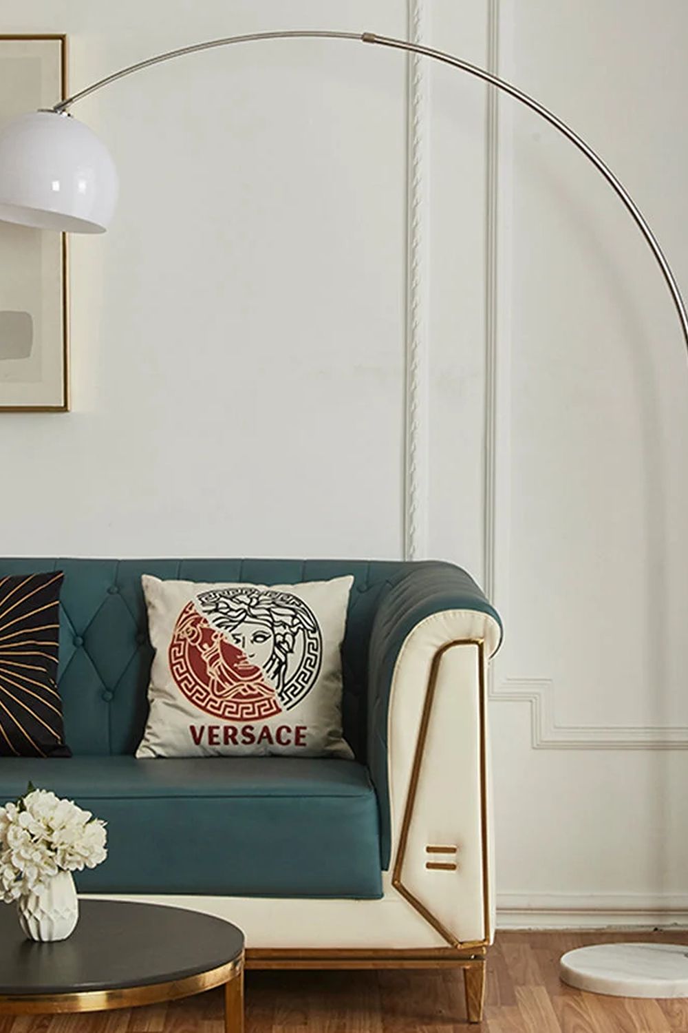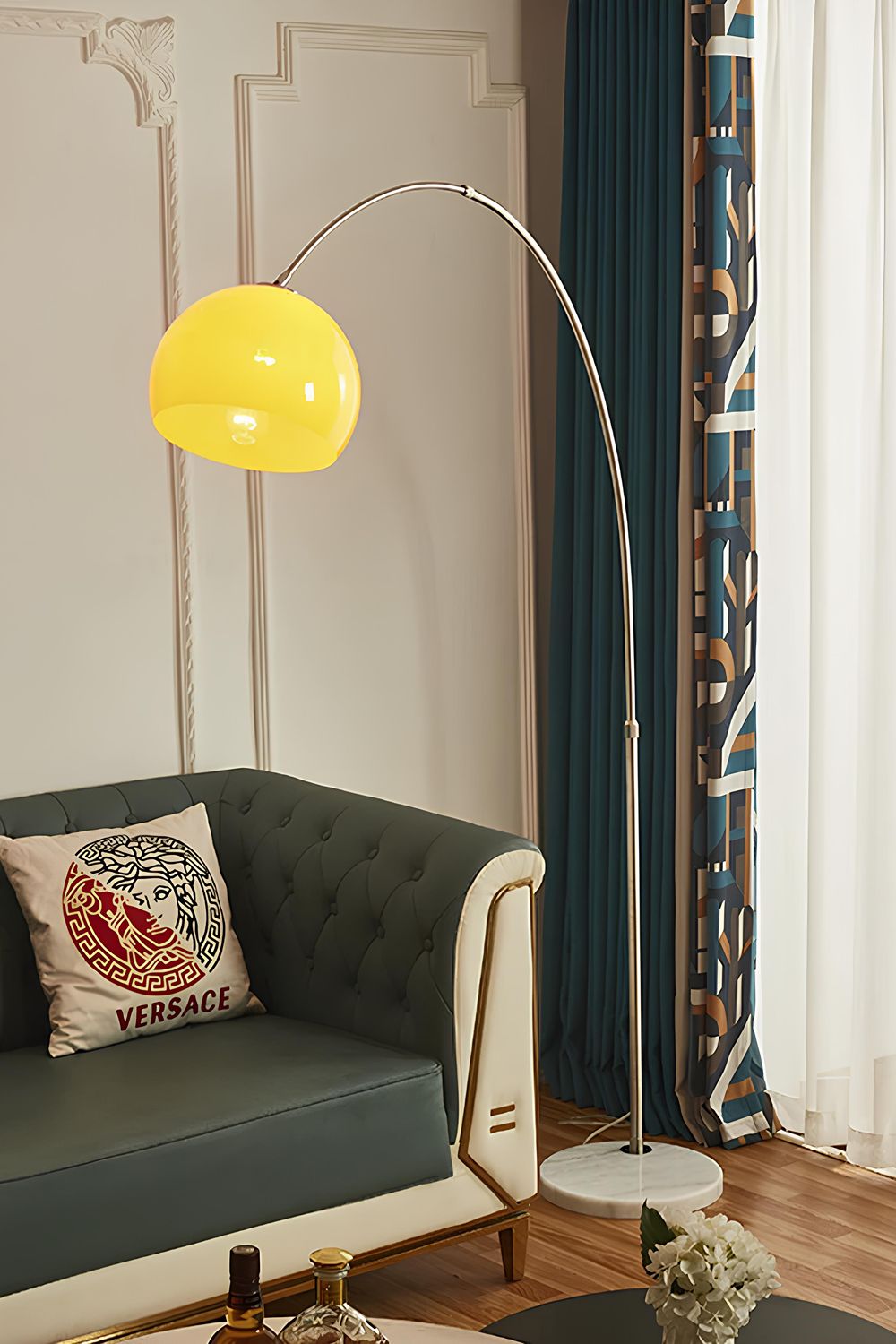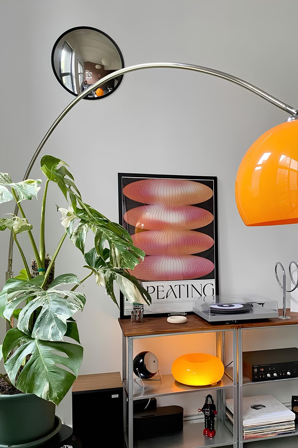 Deve Boynu Pleksi Başlık Lambader modern tasarımı ve pleksi kubbe başlığı ile dikkat çeker. Pleksi malzeme sayesinde ışığı yumuşak bir şekilde dağıtarak odada sıcak ve ferah bir atmosfer oluşturur. Dayanıklı ve hafif yapısı ile hem estetik hem de uzun ömürlü bir kullanım sunar. İnce kavisli metal gövde ve mermer tabanla birleşerek mekâna hem şıklık hem de sağlamlık katar.
