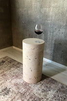 Traverten Görünümlü Polyester Yan Sehpa