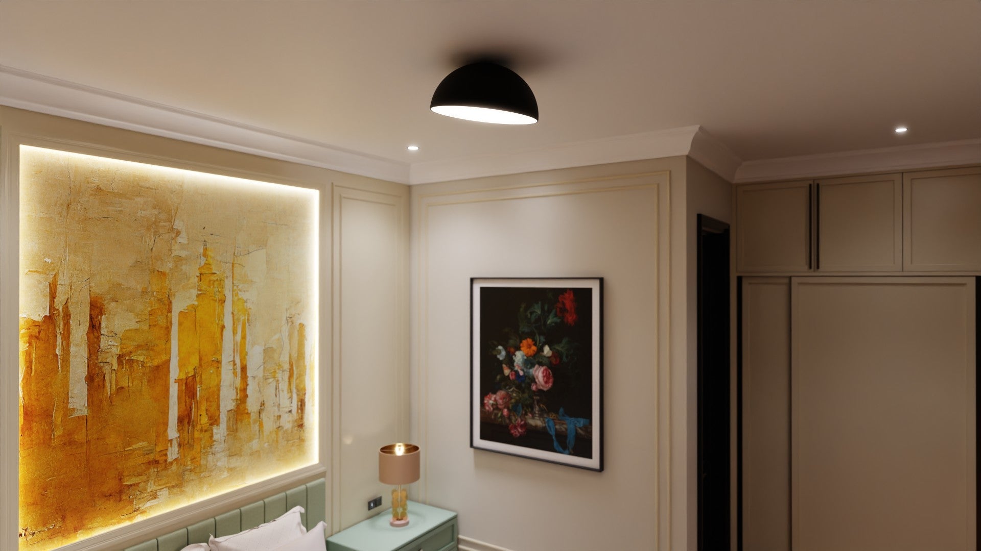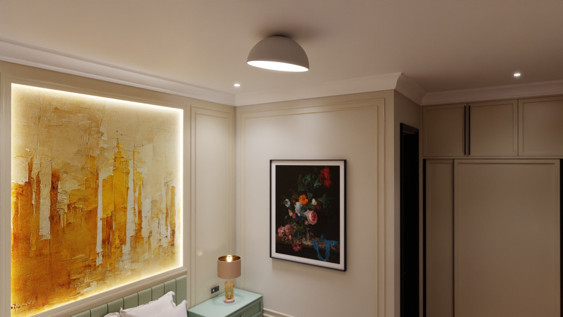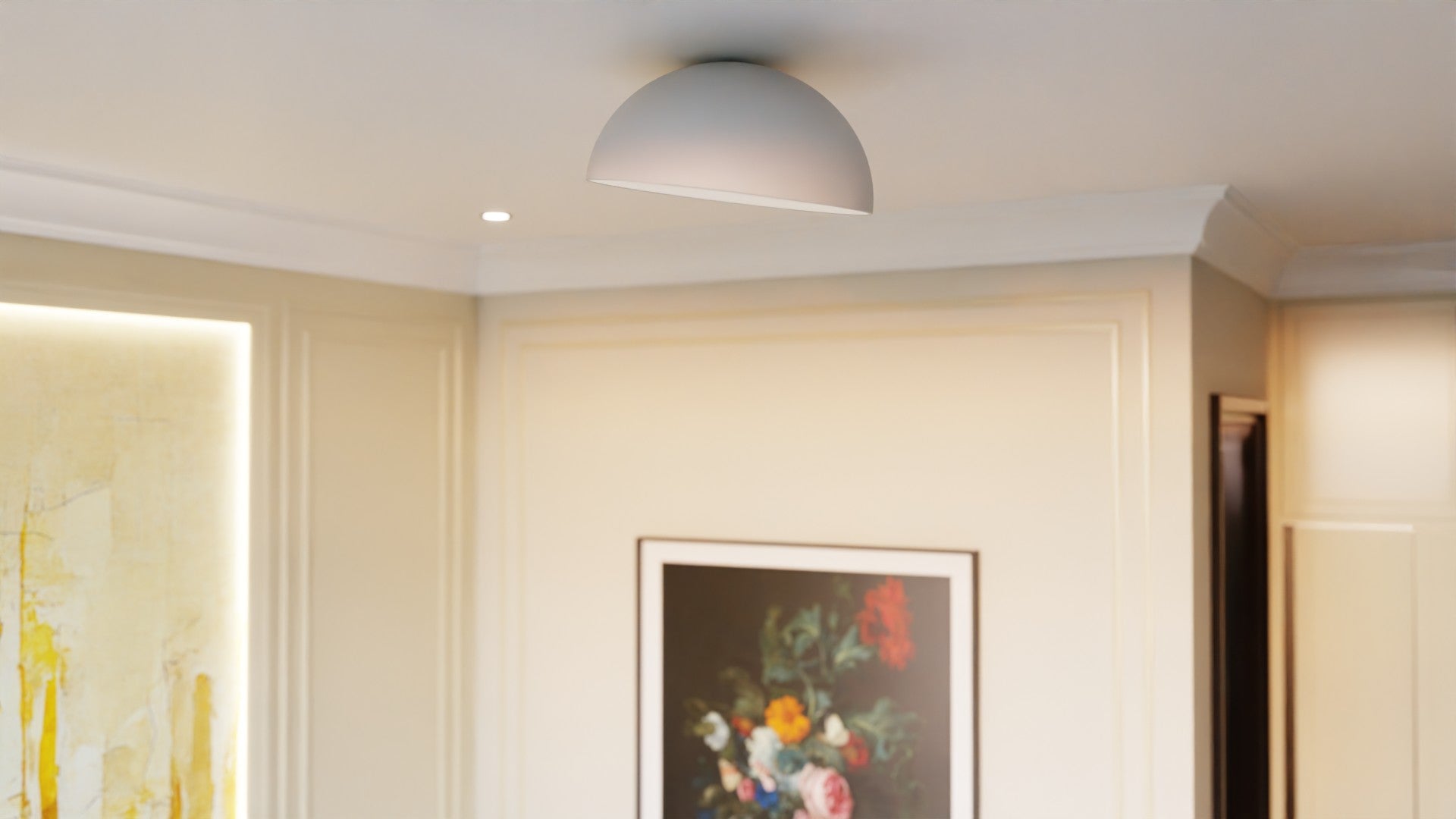 Atolye tarafından Tavan kullanımına uygun olarak tasarlanan Pure Plafonyer  gizli aydınlatması ile dekoratif bir çözüm sunmaktadır.
