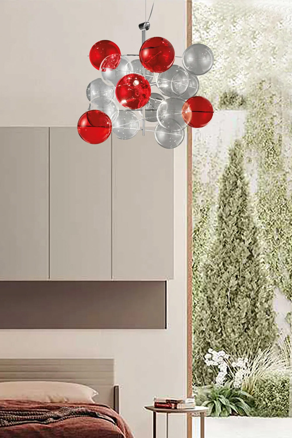 Atom 6L Sarkıt, zarafeti ve görkemli detaylarıyla iç mekânlara dramatik bir dokunuş getirir. Altı ayrı ışık kaynağı, kristal kırmızı tasarımla birleştiğinde sadece aydınlatma değil, aynı zamanda bir atmosfer yaratır. Büyük salonlarda, yemek alanlarında veya yüksek tavanlı odalarda mekânın merkezini vurgular; ışığın ritmi ve renk detaylarıyla her anı özel kılar.