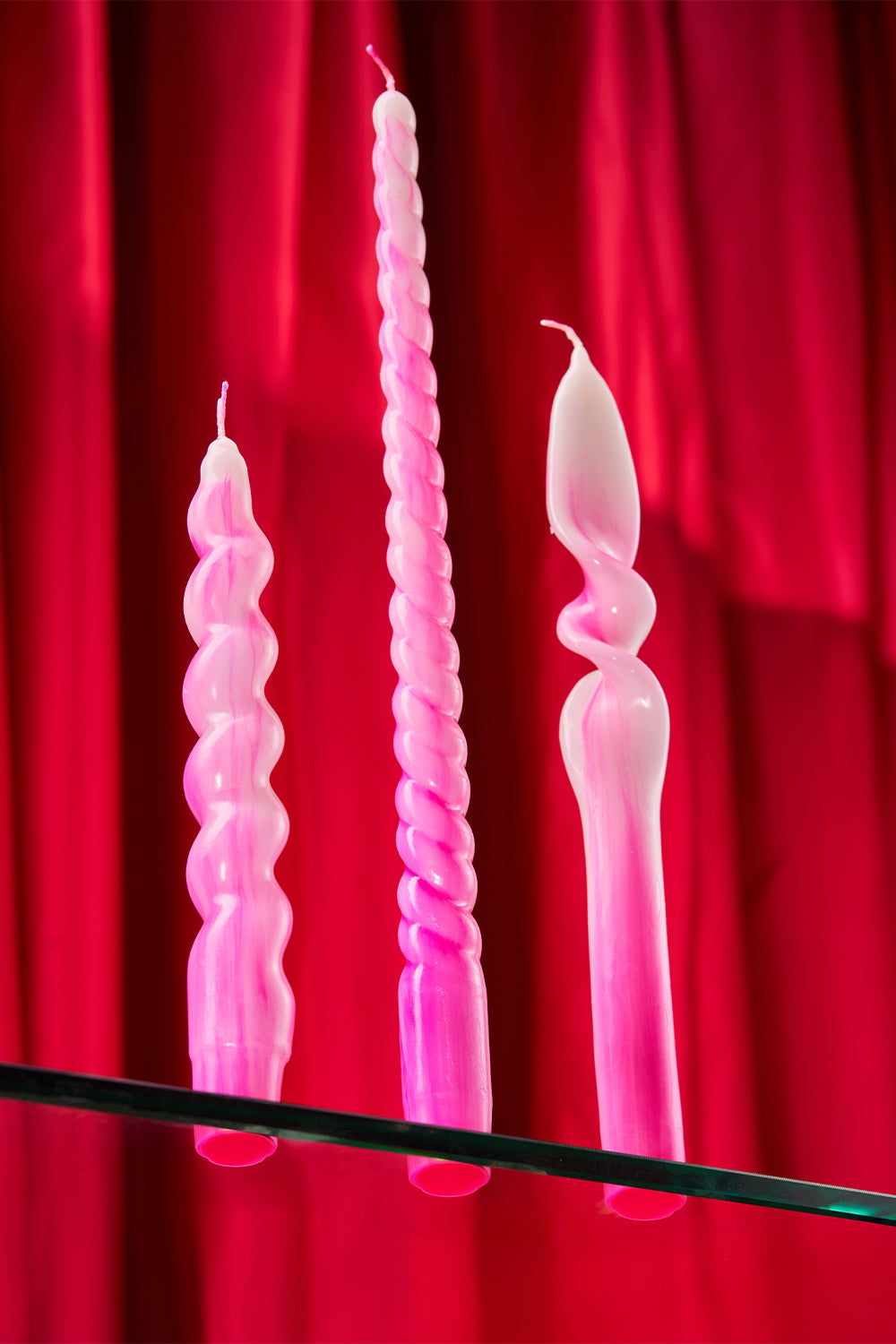 Her sette birbirinden farklı formda 3 adet mum yer alır ve her biri elde dökülerek üretilmiştir.