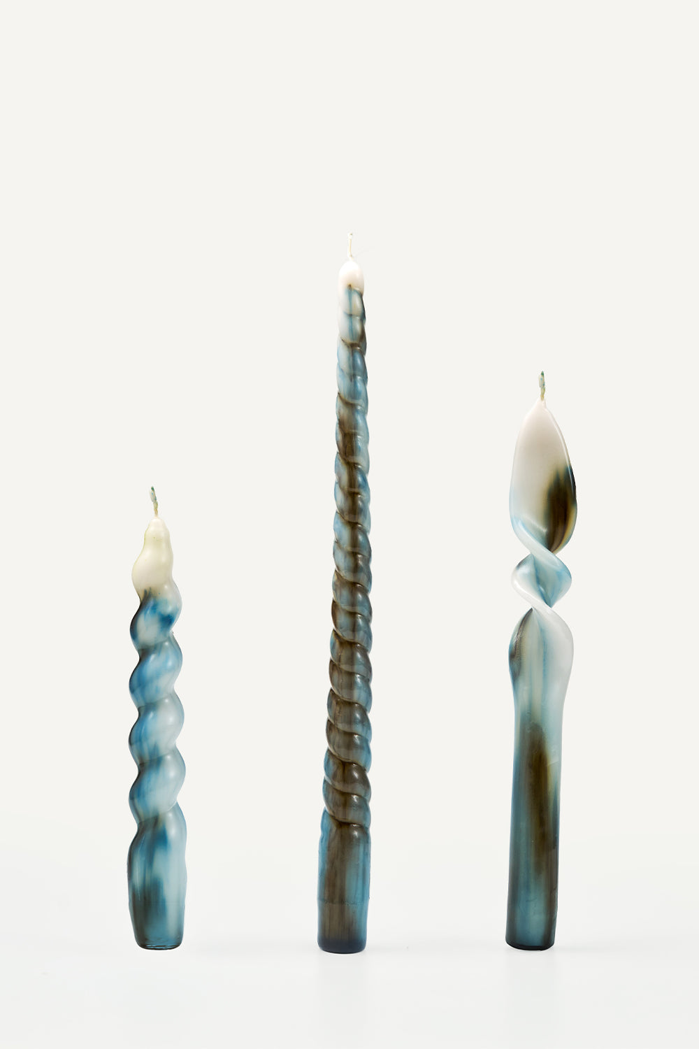 Her sette birbirinden farklı formda 3 adet mum yer alır ve her biri elde dökülerek üretilmiştir.