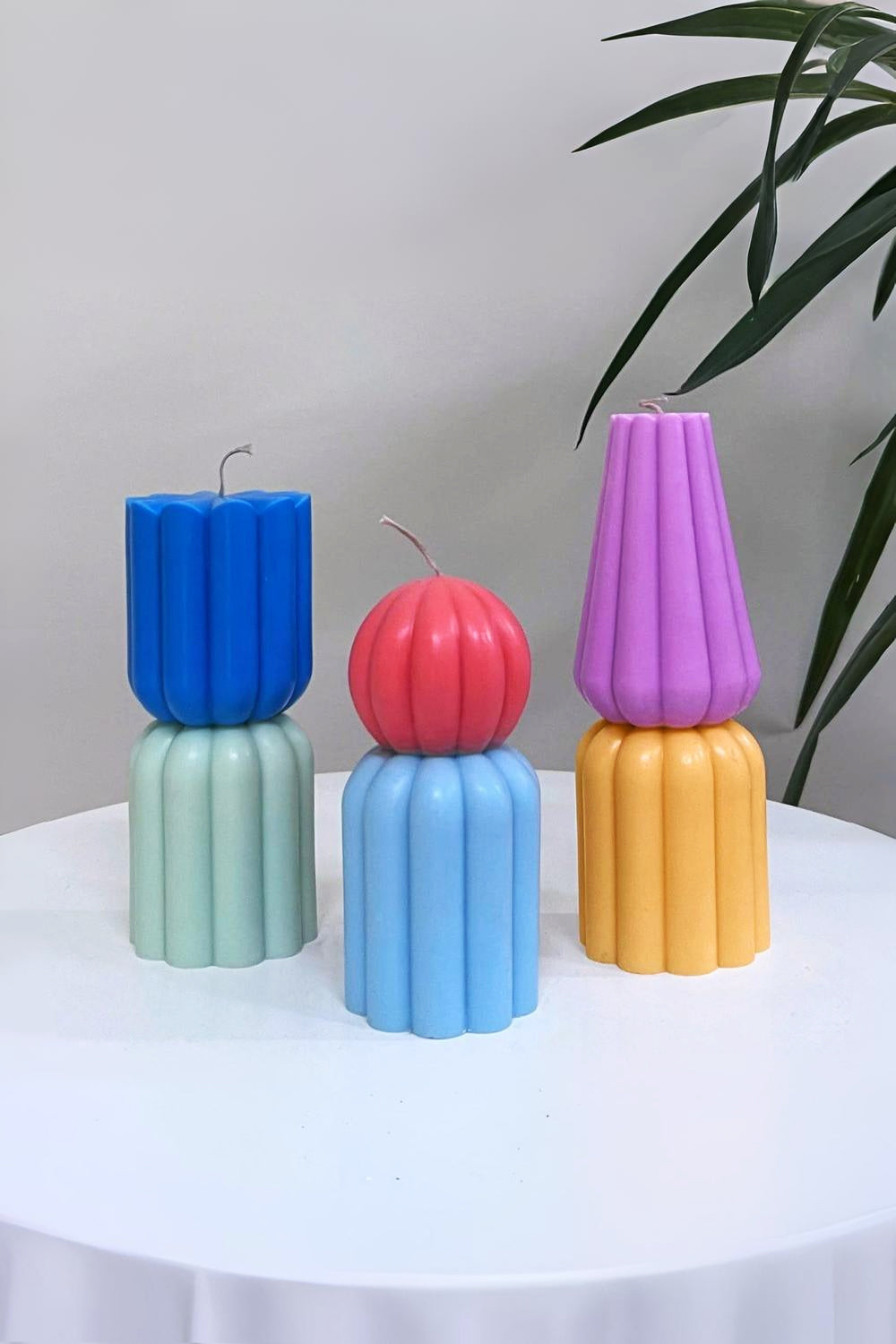 Pop Palette Mumlar, farklı geometrik şekilleri üst üste yerleştirerek dikkat çekici ve eğlenceli bir tasarım ortaya koyar. Renkli kombinasyonlar sunmak üzere tasarlanan bu mumlar, yaşam ve çalışma alanlarınıza canlılık ve enerji katmayı amaçlar. Üst üste konulmuş yapısı, benzersiz renk katmanlarıyla özgün bir görünüm sunar.Tekli kullanılabilecekleri gibi, setln diğer tasarımlarım mumlarıyla 2’li veya 3’lü olacak şekilde tamamlanabilirler.