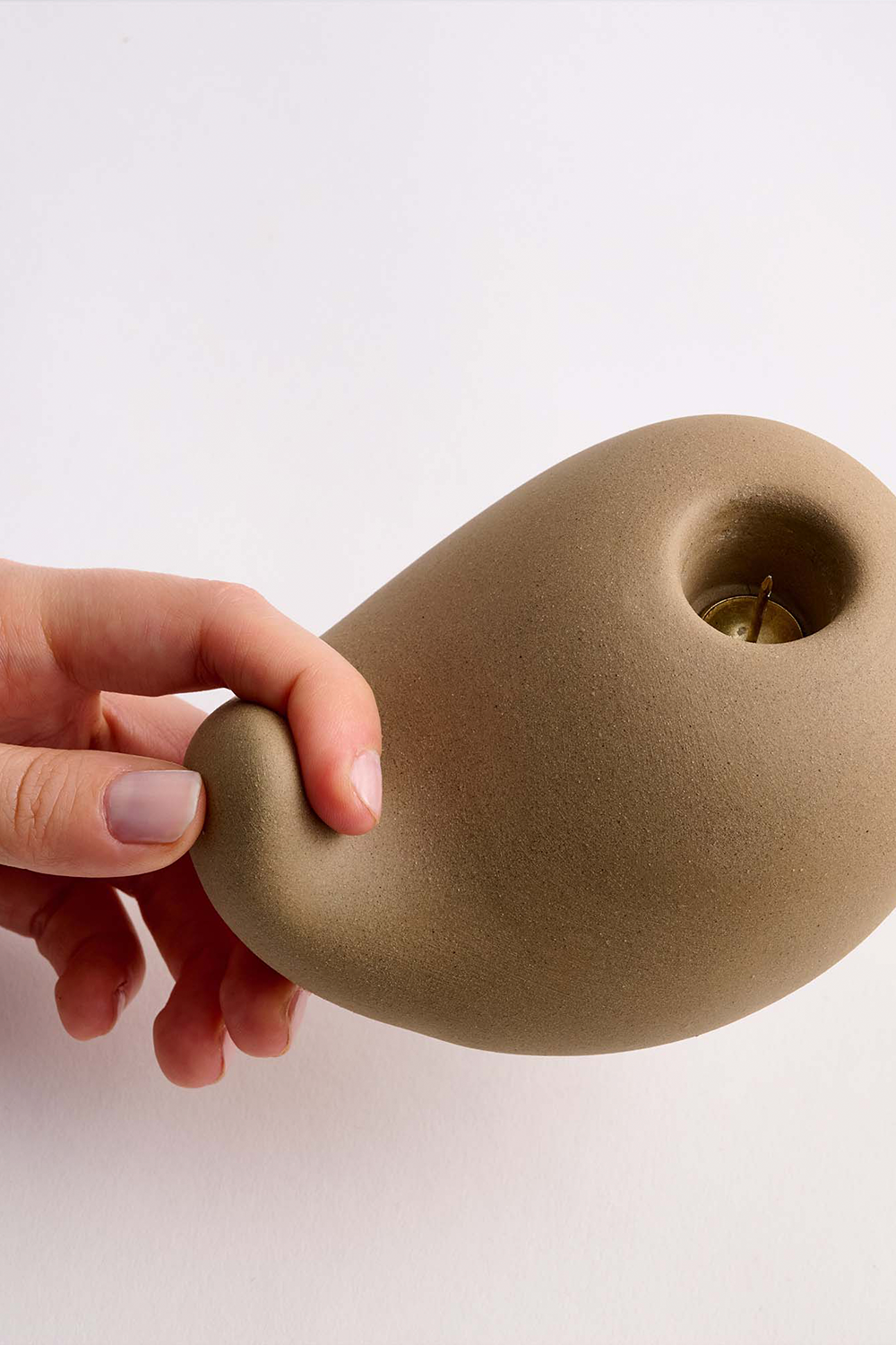 Şamdanlar kuş ve balina formlarının soyutlanmasından esinlenmiştir. Tasarımın aşırılıklarından uzak, işlevsellik ve zarafetin ön planda olduğu bu minimal mumluk, kullanıcısına zamansız, modern bir deneyim sunar.