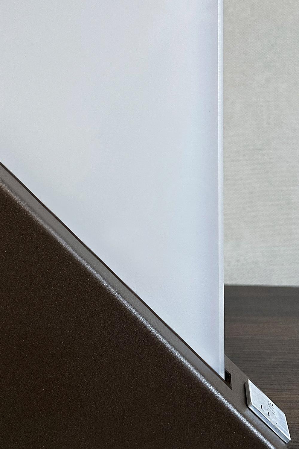 Metal ve pleksinin sıcak tonlardaki renkler ile uyumuyla tasarlanmıştır.