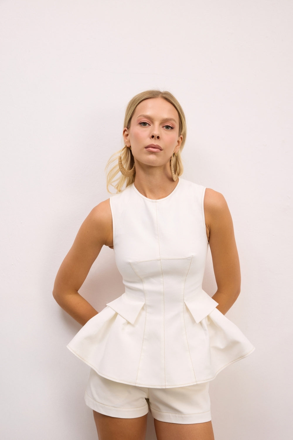 Kontrast dikiş detaylı, cepli ve yandan fermuar kapamalı