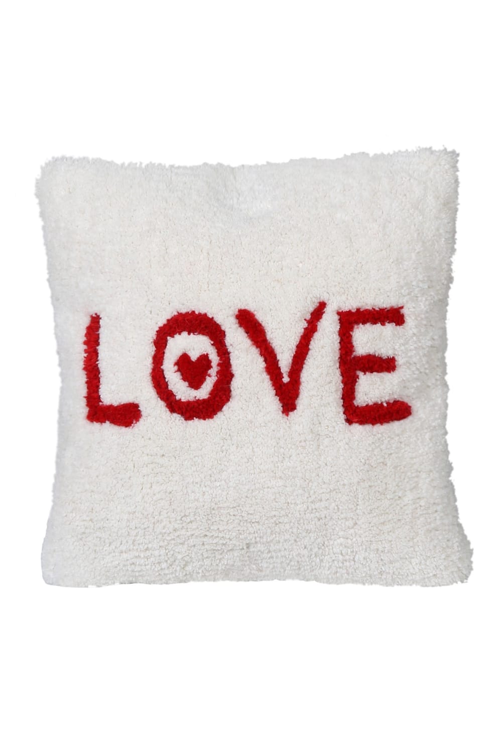 Love Kırlentimiz tufting dokuma tekniği ile üretilmiştir. Tasarımı tamamen bize ait olan ürünümüzün içeriğinde akrilik ve pamuk iplik kullanılmıştır.