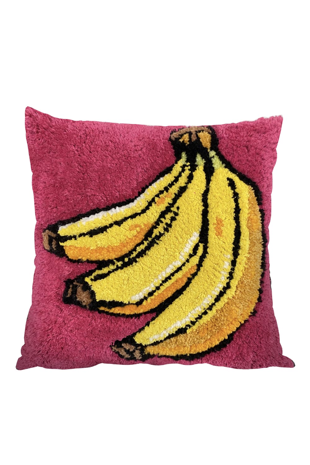 Muz Pillow, Fille a Fille Design Studio tarafından kaliteli ve dayanıklı bir ürün elde etmek amacıyla akrilik ve pamuk ipliklerin birleşiminden üretilen benzersiz bir tasarımdır.