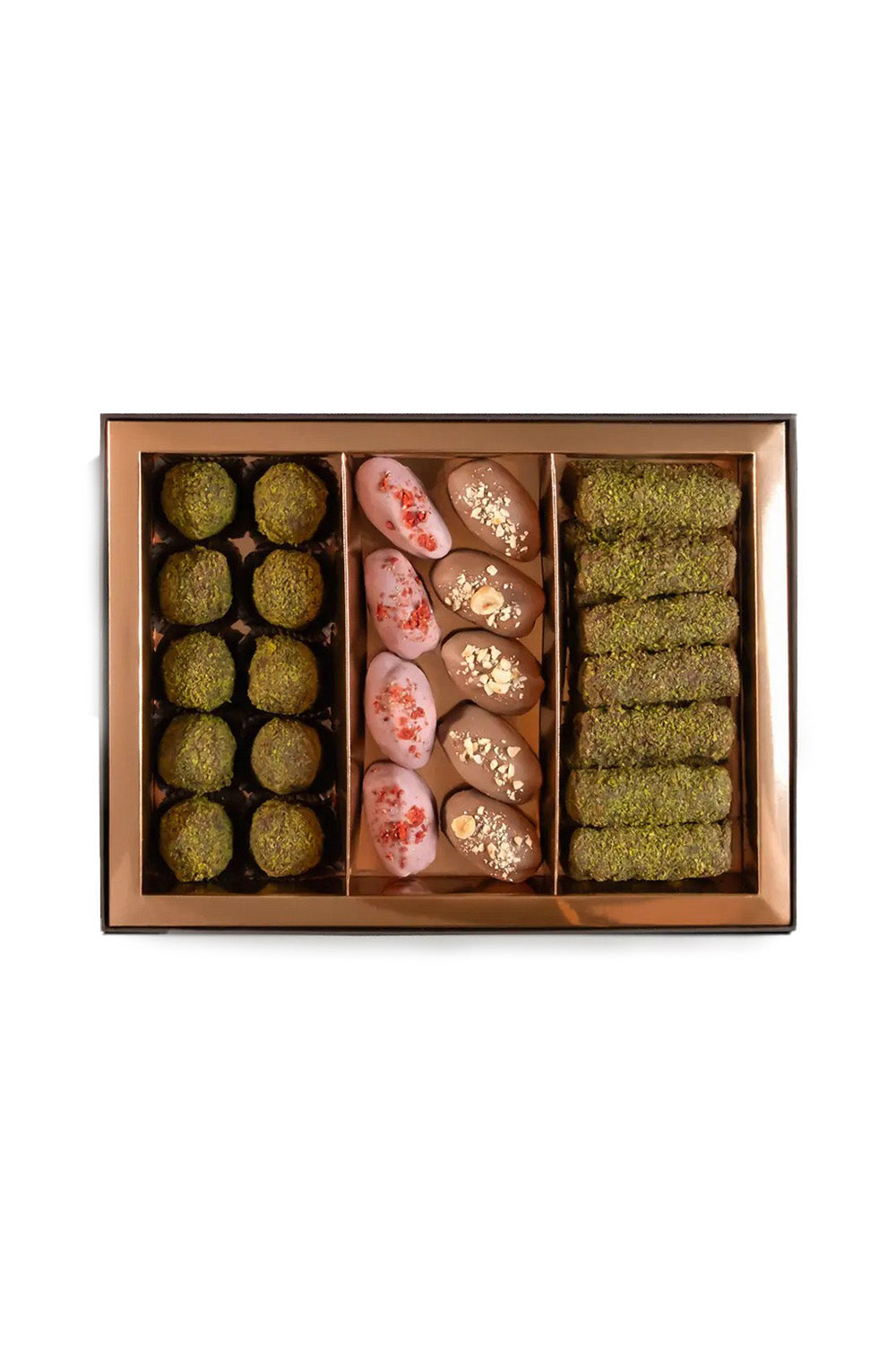 Akışkan Çikolatalı Fıstıklı Stick, Çikolata Kaplı Hurma ve Ceviz, Akışkan Çikolatalı Trüf