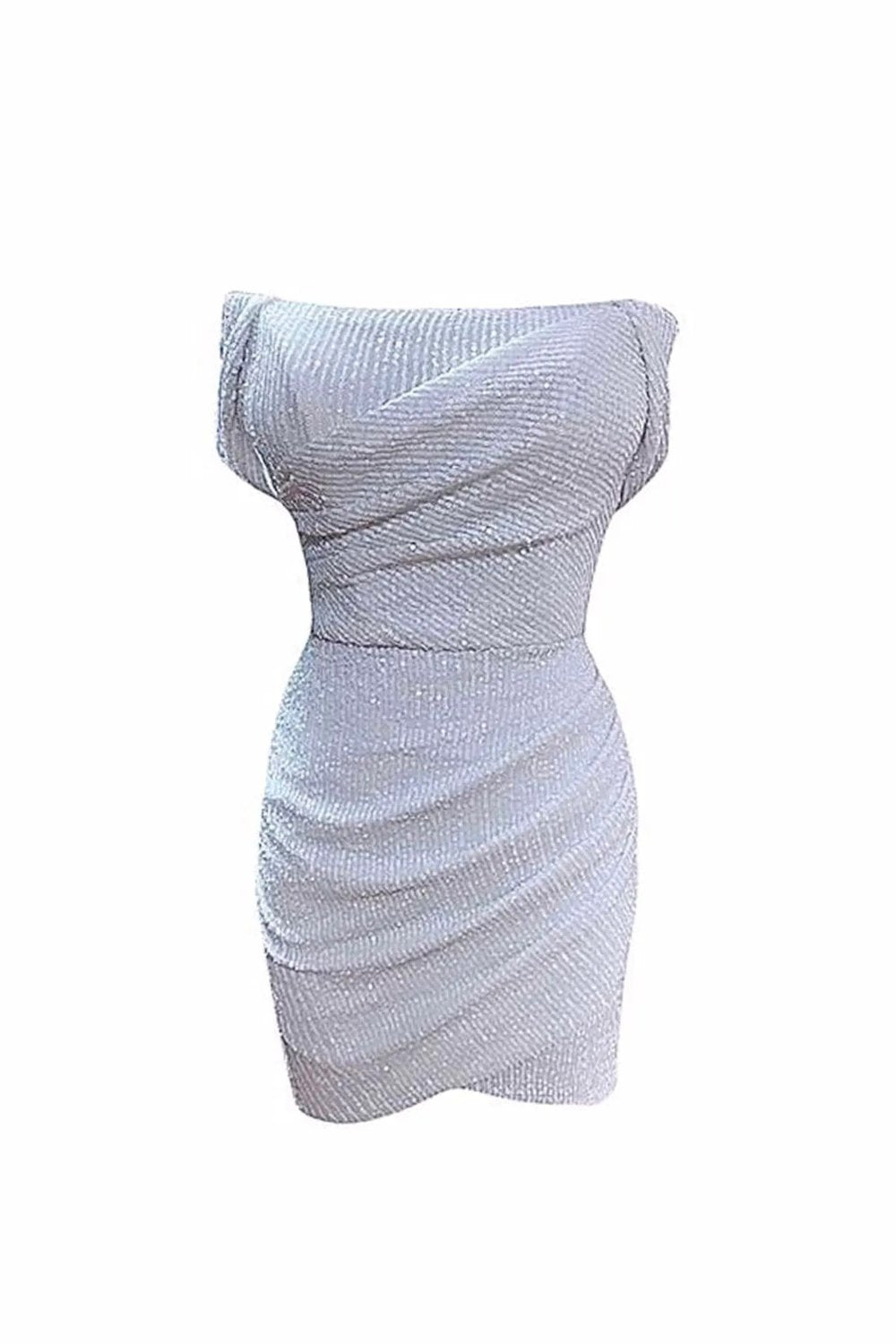 Işıltılı beyaz payet dokusu ve korse formundaki üst bedeni ile feminen silueti vurgulayan bu mini elbise, modern ve zarif bir duruş sunar. Likralı yapısı bedeni nazikçe sararken, astarlı oluşu iç göstermeden konfor sağlar. Özel davetlerden kutlama gecelerine kadar güçlü ve dikkat çekici bir görünüm için ideal.