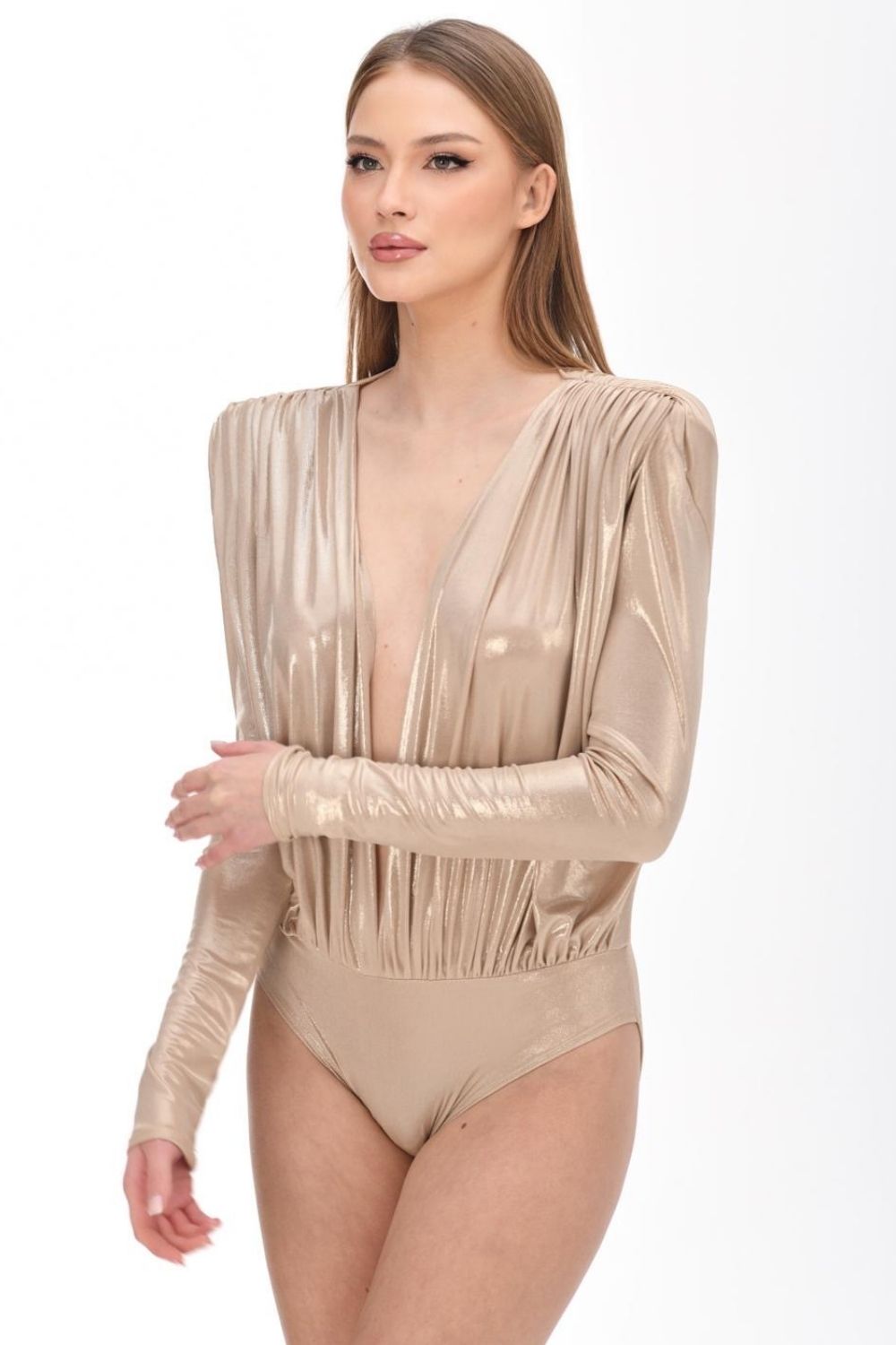 Light Gold Metalik Efektli Vatkalı Bodysuit