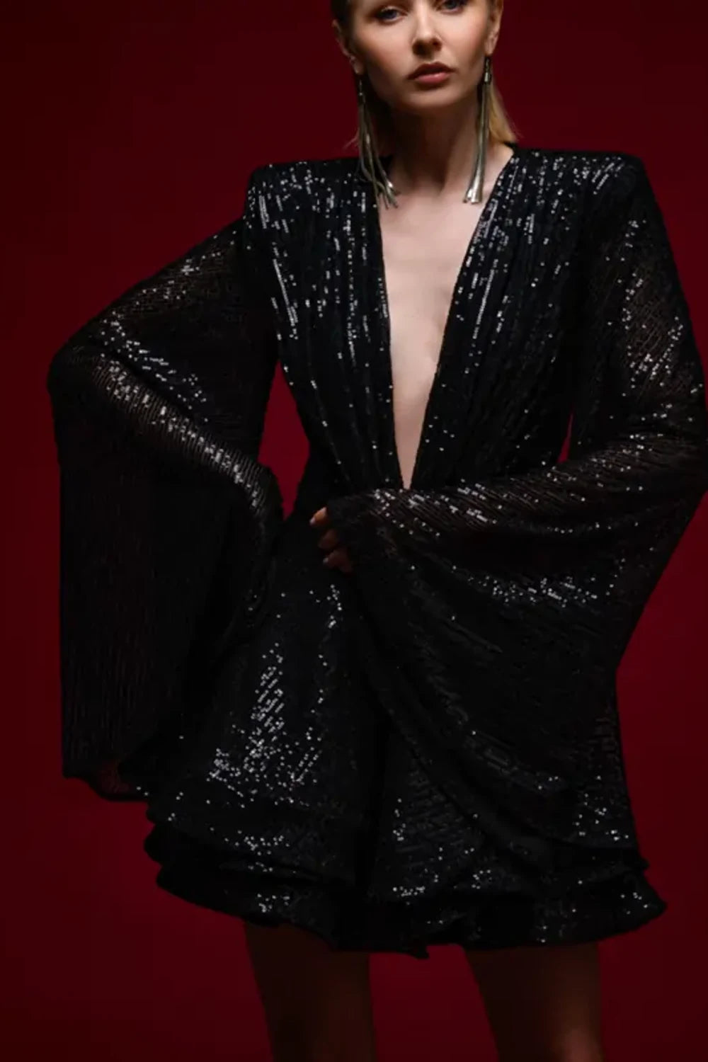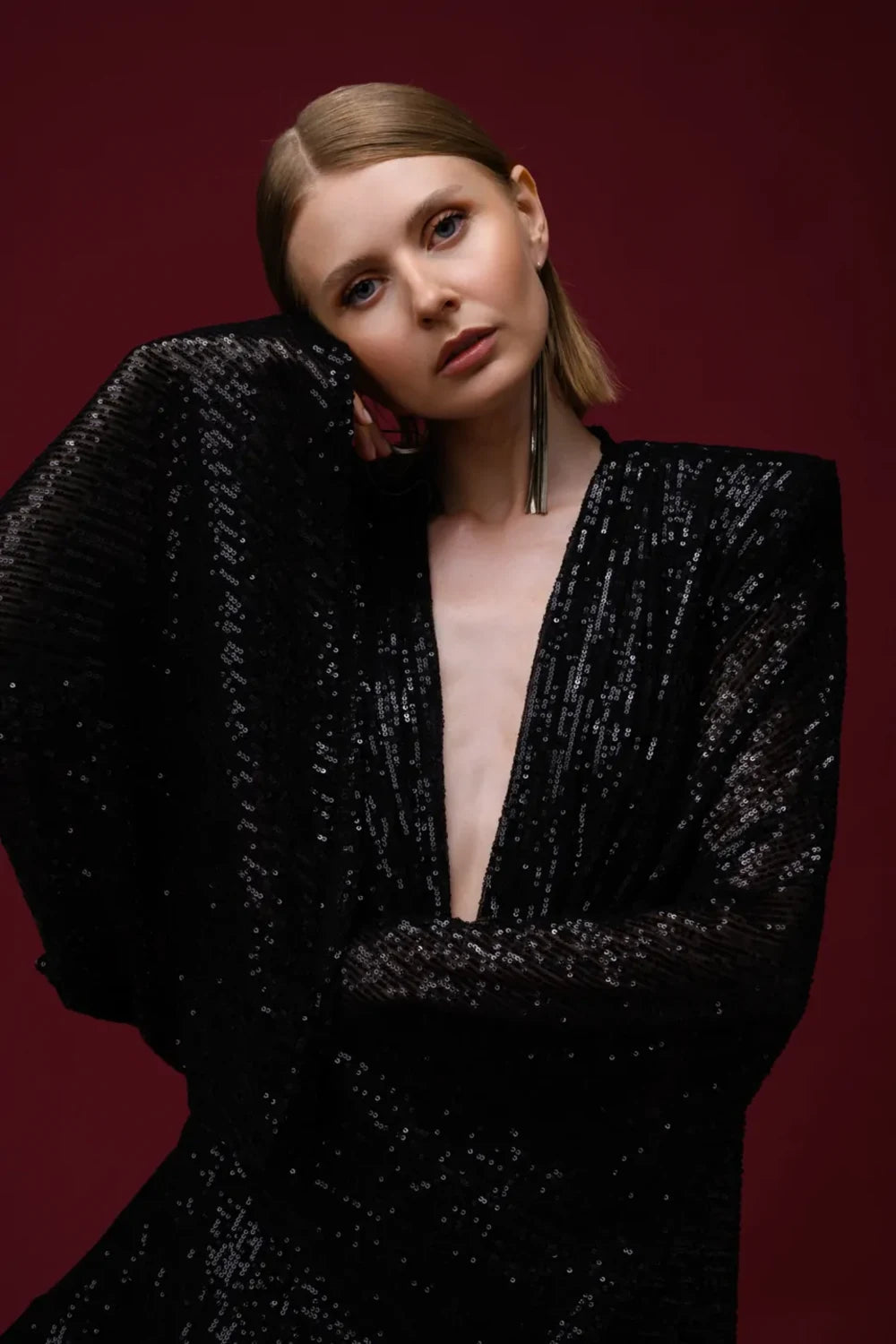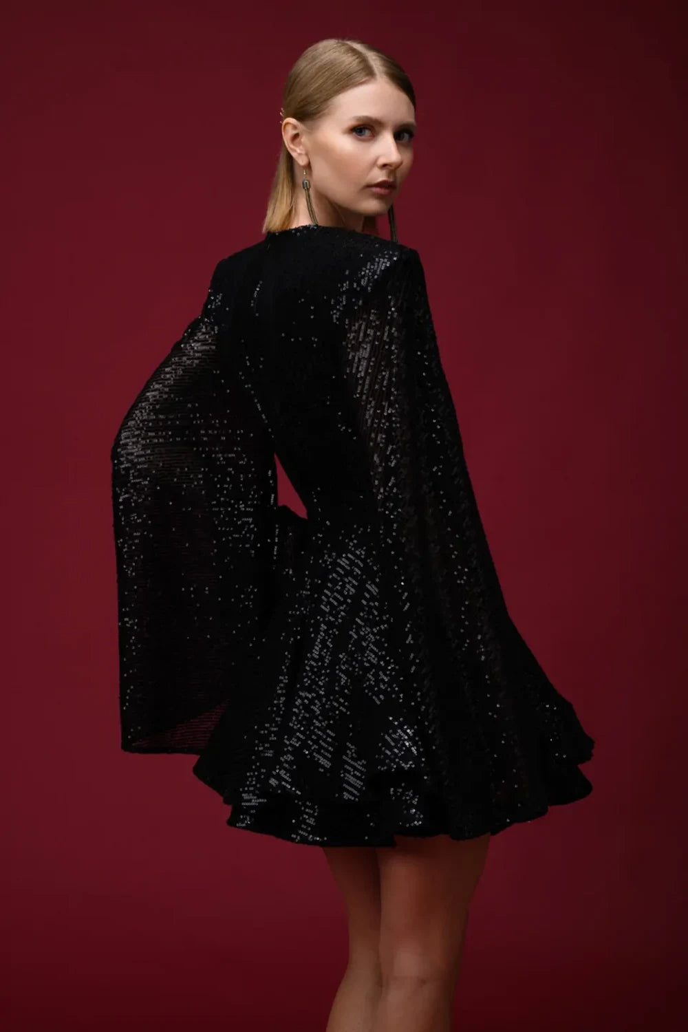 Işıltılı siyah payet yüzeyiyle dikkat çeken bu glenli mini elbise, sade ama etkileyici çizgisiyle feminen bir siluet sunar. Likralı yapısı bedeni zarifçe sararken, astarlı formu iç göstermez ve gece boyunca konforlu bir kullanım sağlar. Parti, davet ve özel kutlamalarda zamansız şıklık arayanlar için güçlü bir seçenektir.
