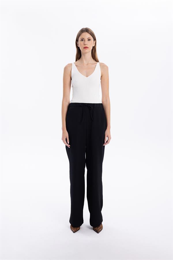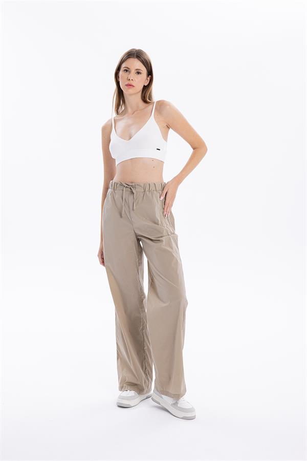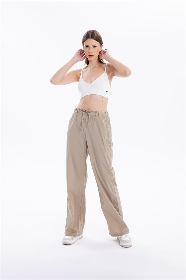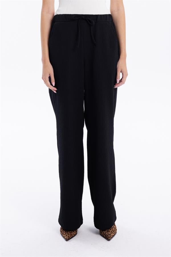Gofre Desenli Bağcıklı Regular Kadın Dokuma Pantolon
