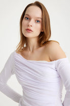 Caprina Bluzumuzla moda dünyasını fethedin! Likradan yapılmış bu düşük omuzlu bluz, cesaret ve risk alma tavrını yansıtıyor. Cesur olun ve tarzınızla öne çıkın.