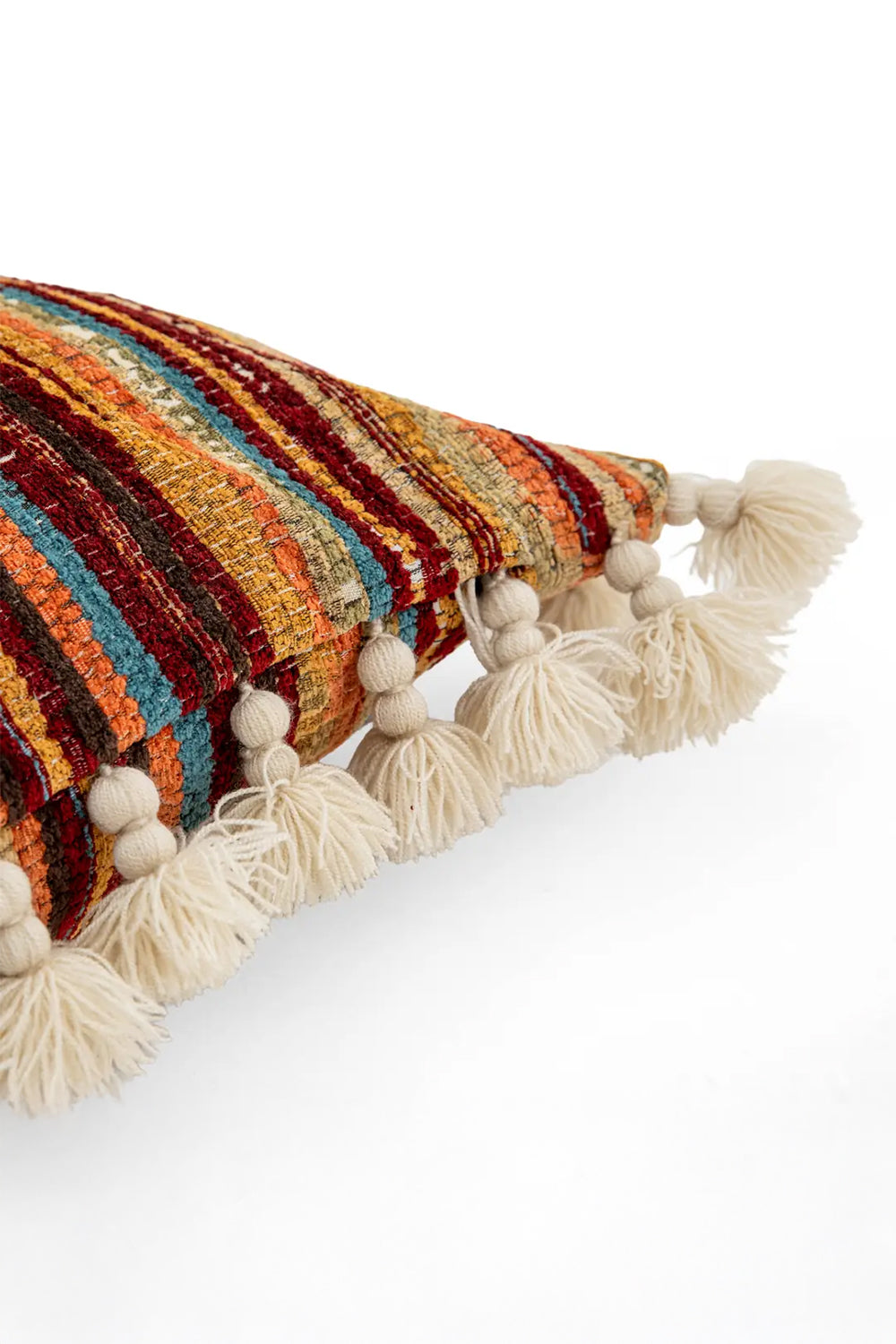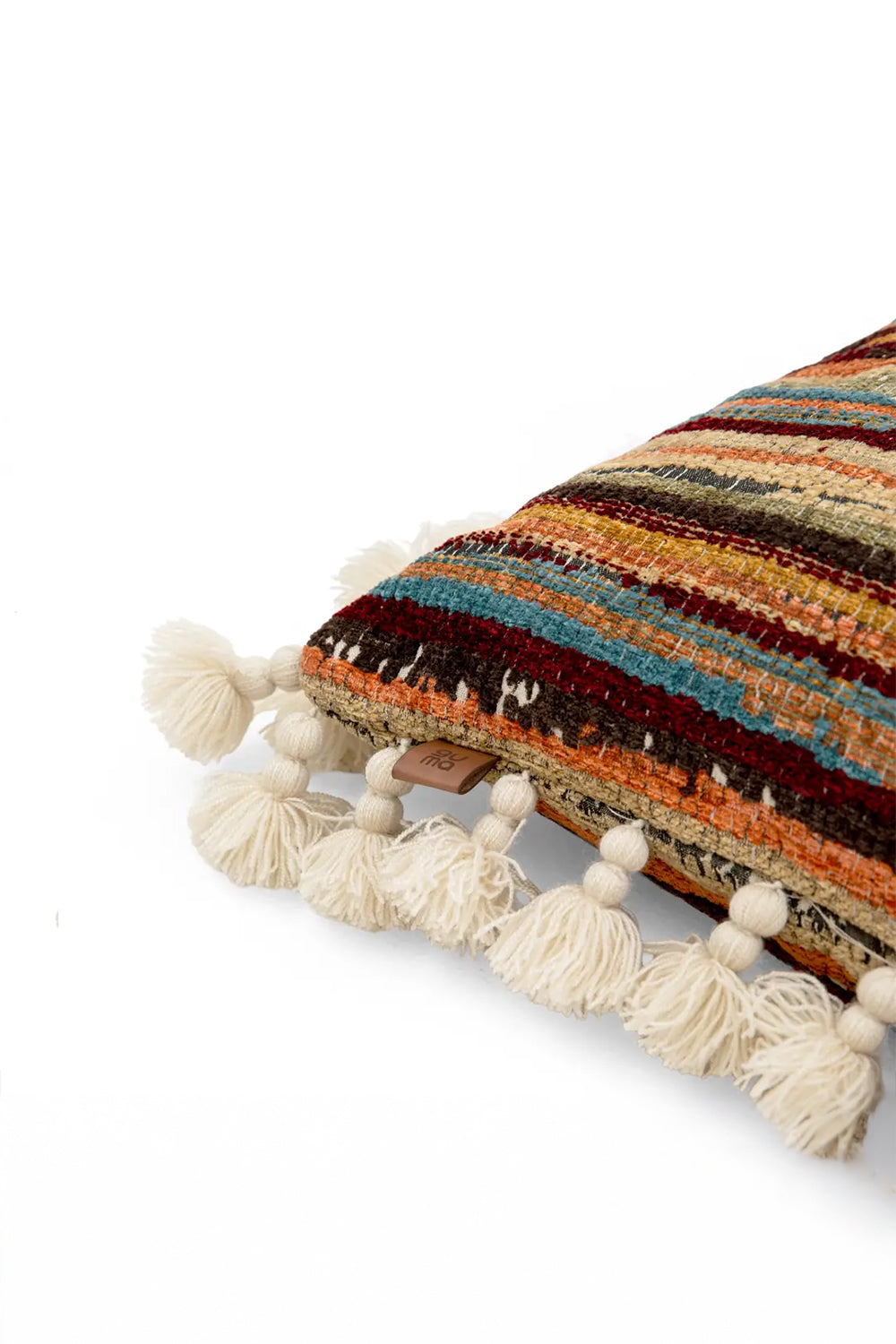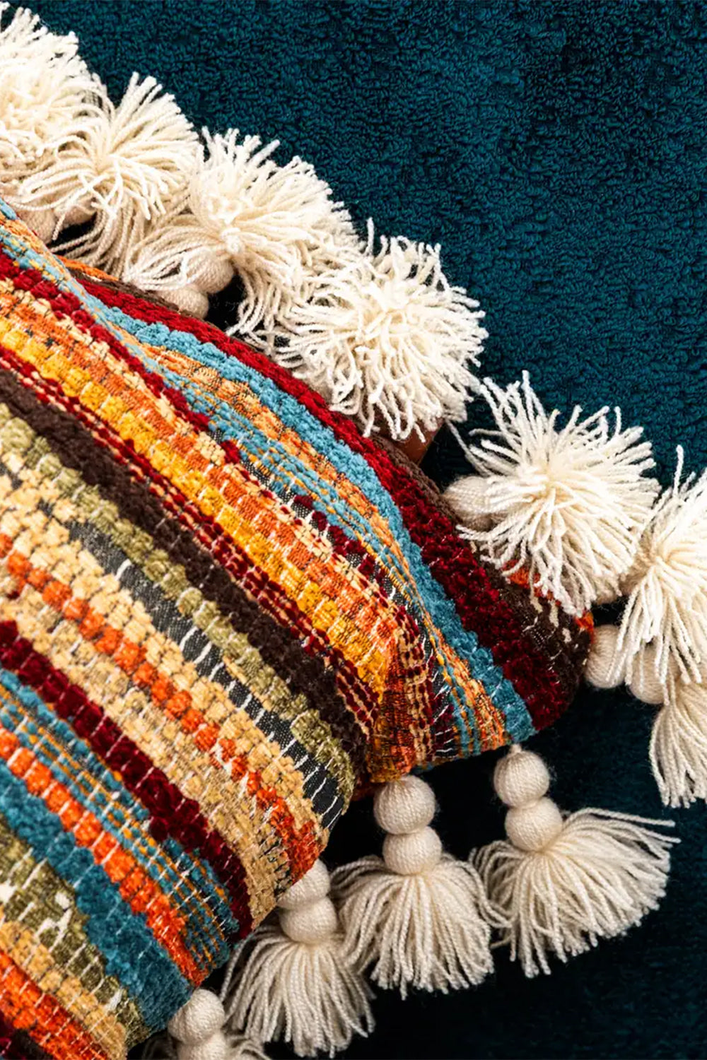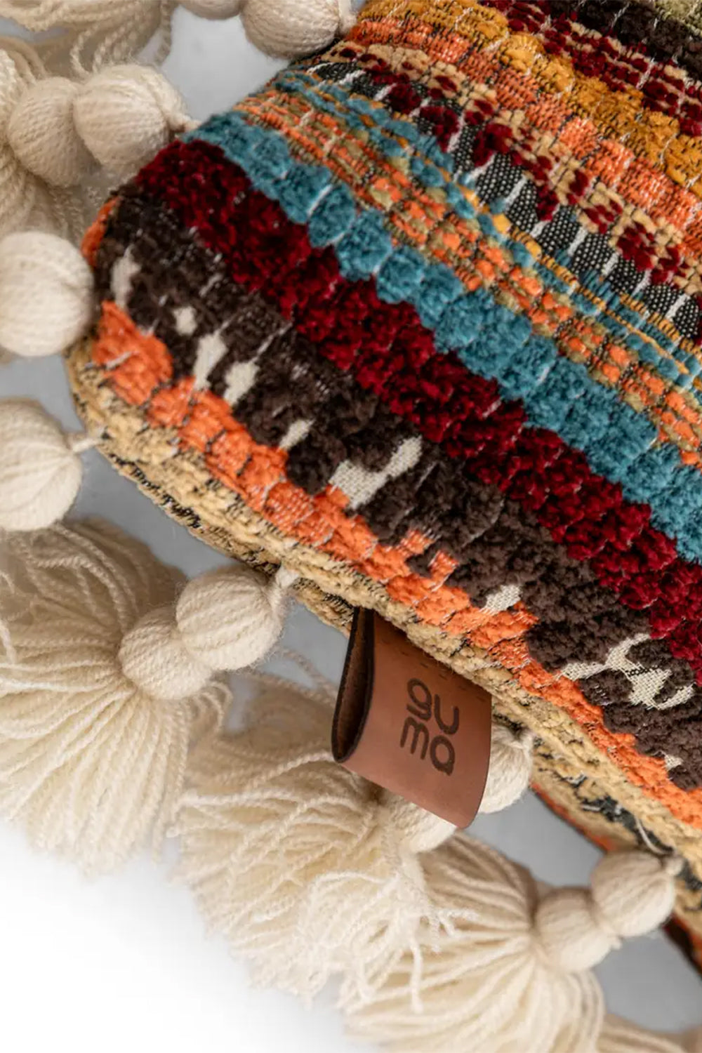 Kenar Detayı: El yapımı pamuk püsküller ve ahşap boncuklar