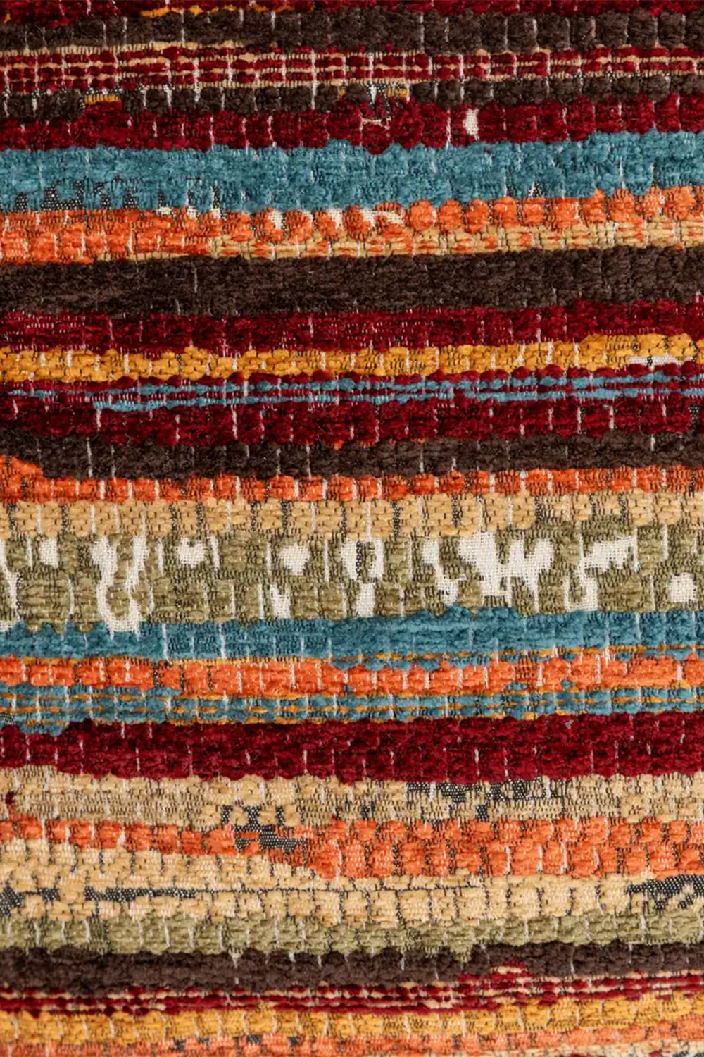 Renk: Kırmızı, turuncu, mavi, bej tonlarında çizgili yüzey