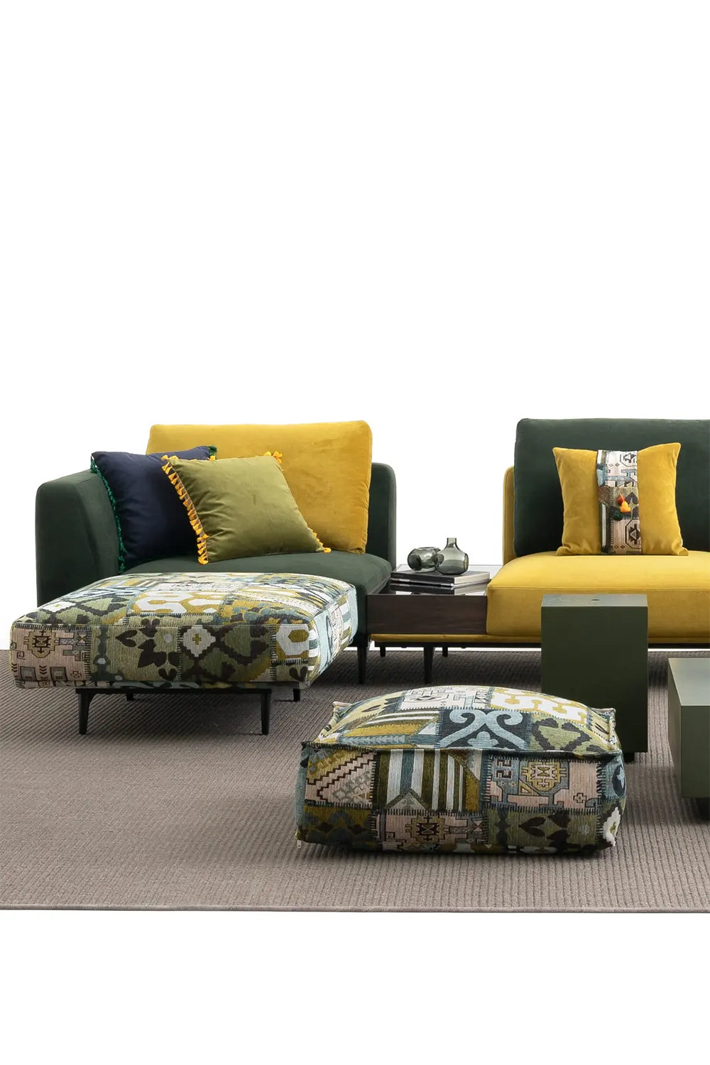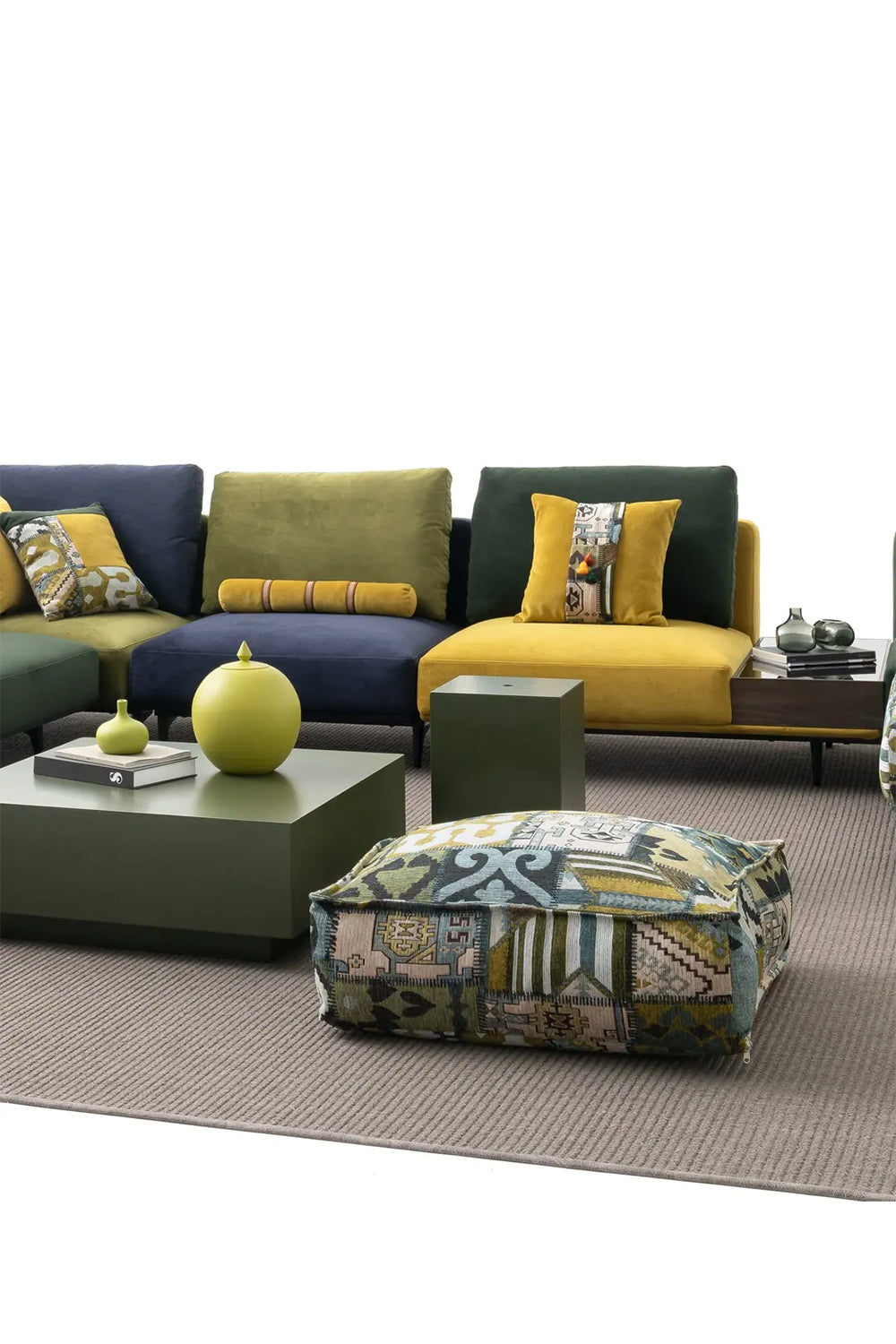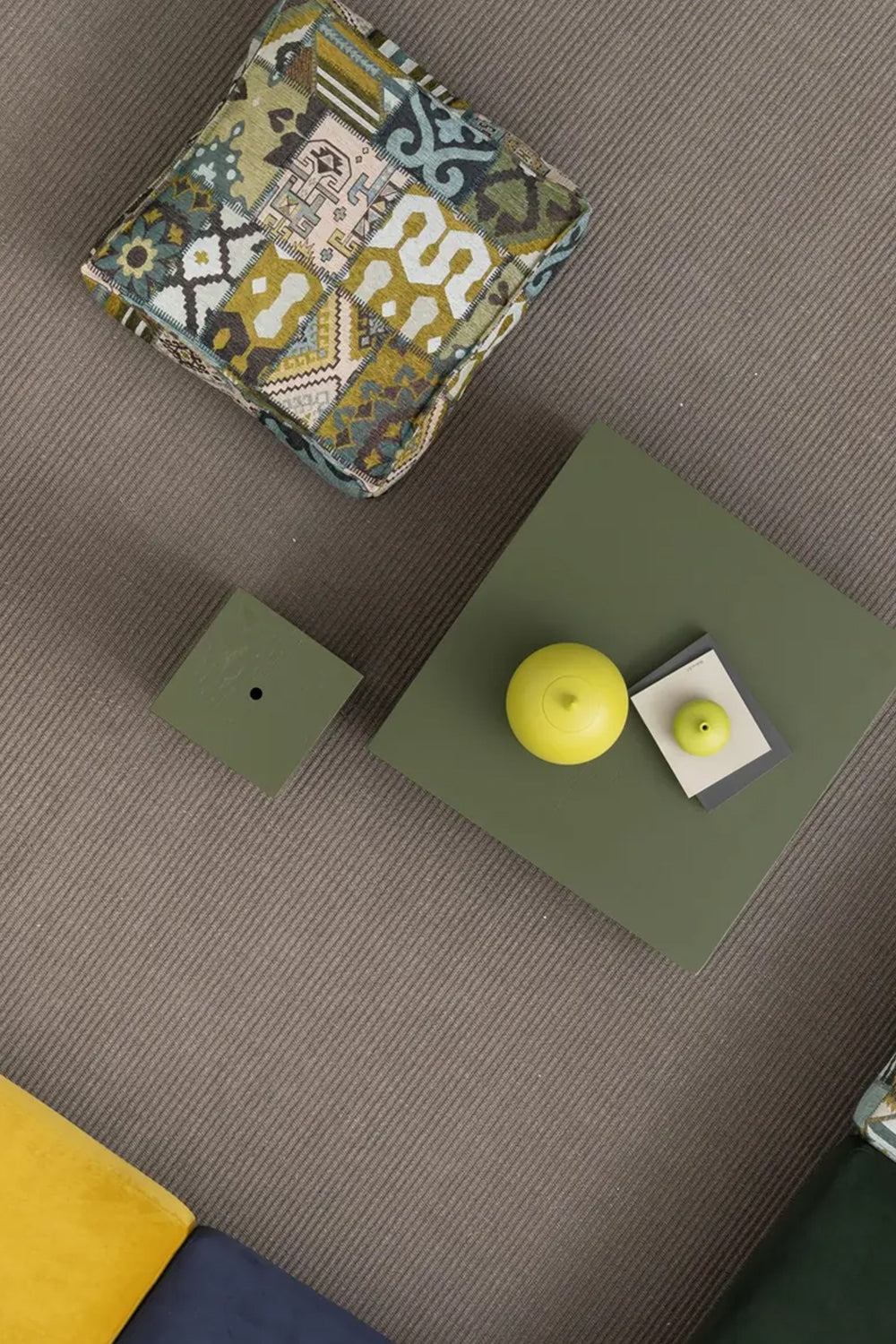 Olive Ethnic Desenli Minder Puf
