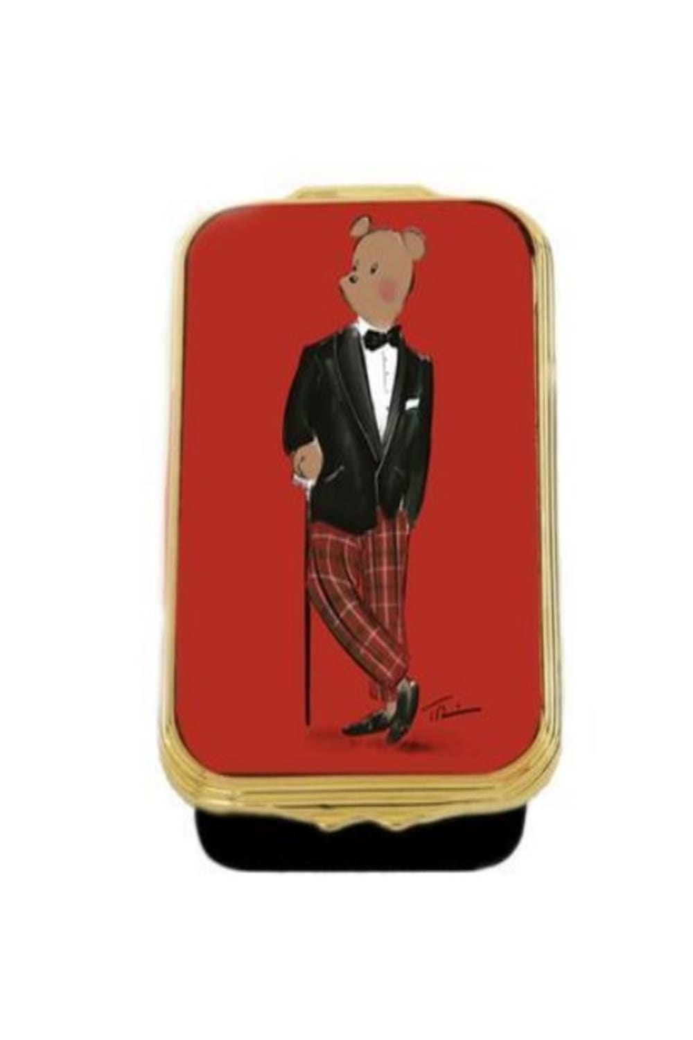 Bu el yapımı emaye kutu, New York merkezli illüstratör Tug Rice ile işbirliği içinde oluşturulan Ayı Hal koleksiyonumuzun bir parçasını oluşturuyor. Burada gece elbisesiyle görülen kusursuz bir şifoniyer olan Hal, tembelce bastonuna yaslanıyor ve uzaklara bakıyor. Zarafet ve kolaylık yayan karizmatik bir kreasyon olan Hal ayı parçalarımız, her yerdeki züppe giyenler için harika hediyelerdir. Ölçüler: U: 65 mm G: 45 mm Y: 25 mm
