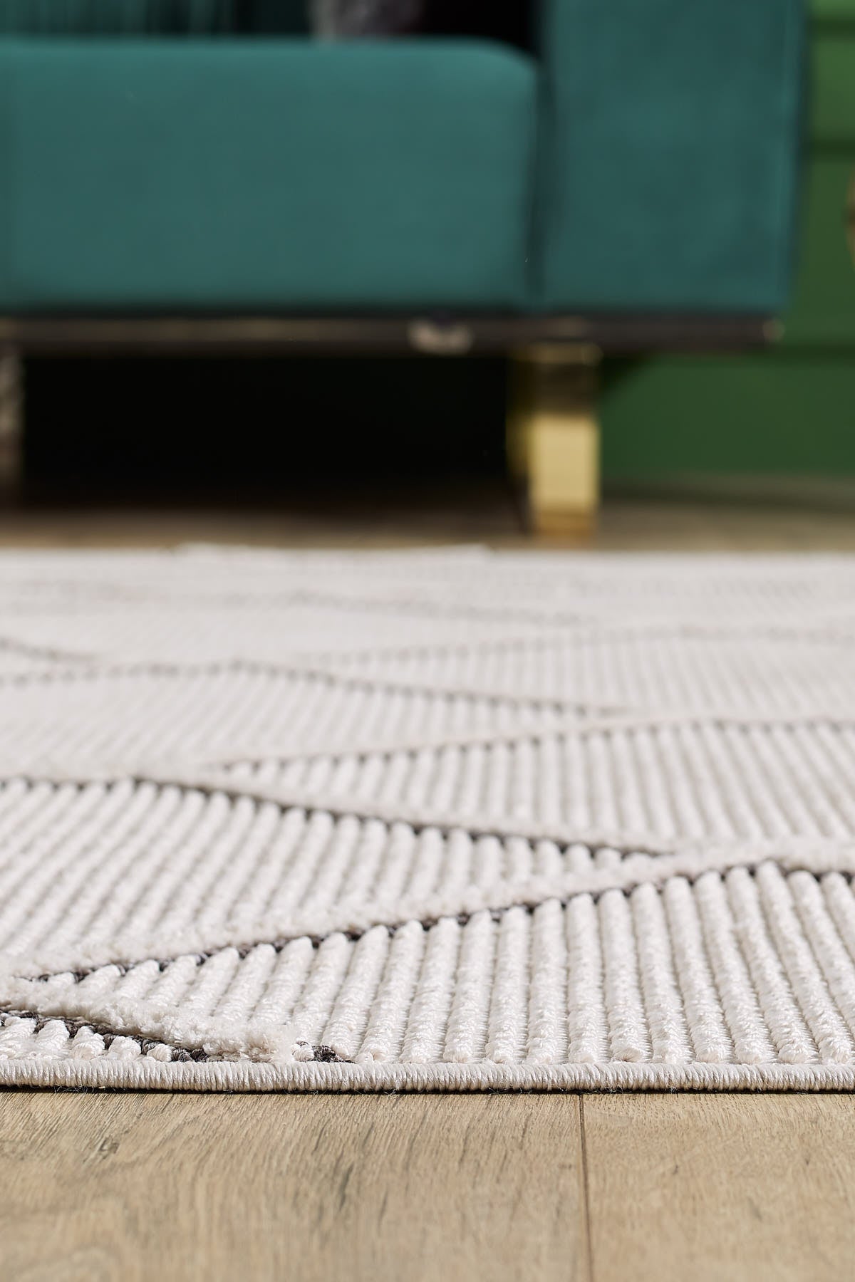 İpliği polyesterdir, taban malzemesi %100 pamuktur. Saçaklıdır, hav vermez. Geometrik deseni ile halı modası evinize gelir, İskandinav tarzı mobilyalar ile uyumludur. Oturma odası, yatak odası, antre, hol, çocuk odası, mutfak kullanımına uygundur. Yerden ısıtmalı alanlarda kullanılabilir. Taban yalıtımına katkı sağlar.
