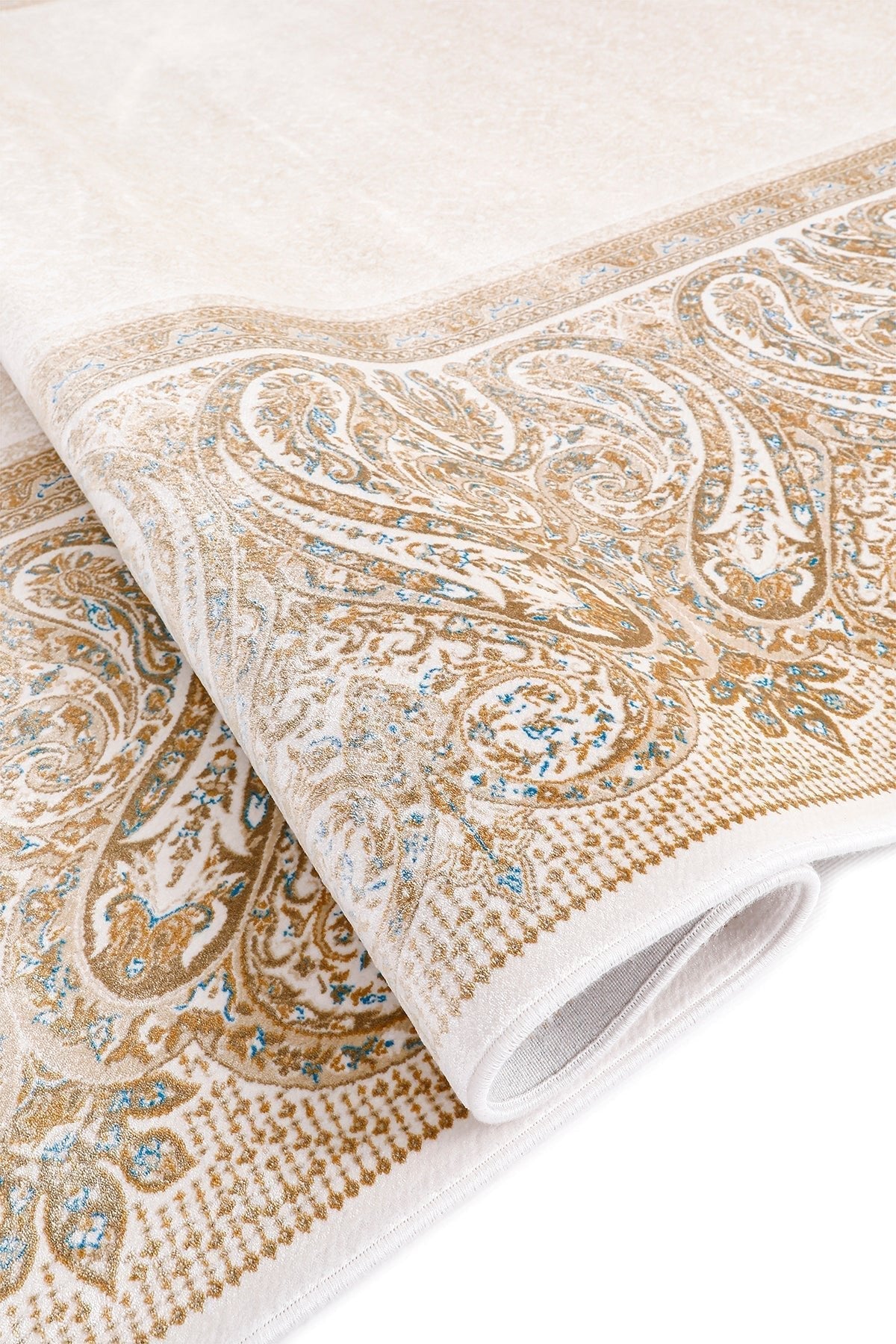İpliği doğal bir malzeme olan %100 viskon olup taban malzemesi %100 pamuktur. Modern Klasik İpek karışımı deseni ile halı modası evinize gelir. Takma Saçaklıdır. Modern mobilyalar ile uyumludur. Oturma Odası, Yatak Odası, Salon kullanımına uygundur. Yerden ısıtmalı alanlarda kullanılabilir. Taban yalıtımına katkı sağlar.