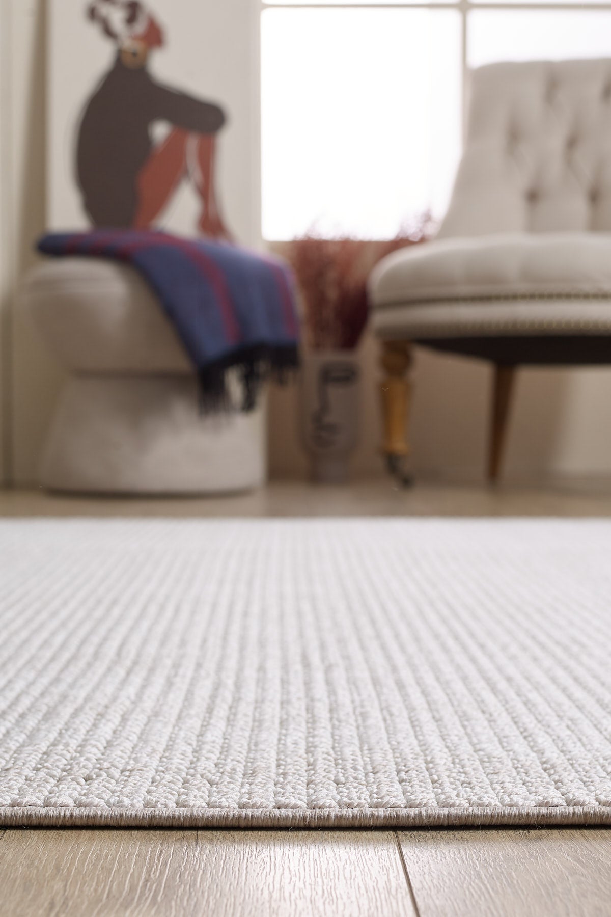 İpliği polyesterden oluşmaktadır. Taban malzemesi %100 pamuktur. Saçaklı, tozumaz, antialerjik ve kolay temizlenebilir halıdır. Modern, İskandinav desene sahiptir. Oturma Odası, Yatak Odası, Antre-Hol ve Çocuk Odası kullanımına uygundur. Yerden ısıtmalı alanlarda kullanılabilir. Taban yalıtımına katkı sağlar. *Pamuk tabanlı halıların en veya boylarında %3 kısalma görülebilir. *Hav Yüksekliği/Kalınlık: 16 mm **Halıların fotoğraf çekimi esnasında doğru açı ve doğru yansıma için azami dikkati göstermekteyiz fakat ortam ışığı ve dış etkenlerden dolayı halının görseli ve halının kendisi ile renk farklılıkları olabilmektedir.