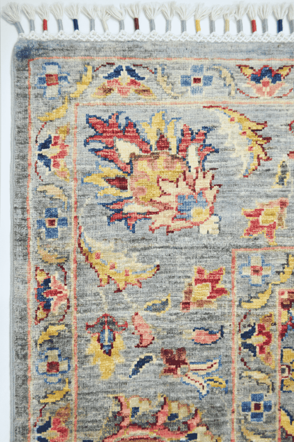 Bu Afgan Binbirgece Halısı, tamamen yün ipliklerle el dokuma tekniğiyle üretilmiş olup, klasik Binbirgece motiflerini taşır. Gri renk tonları, halıya sade ve zarif bir görünüm kazandırır. 176x243 cm ölçüsü sayesinde salon, oturma odası veya geniş yaşam alanlarında hem dekoratif hem fonksiyonel kullanım sunar. Yün dokusu, dayanıklılık ve uzun ömür sağlar.