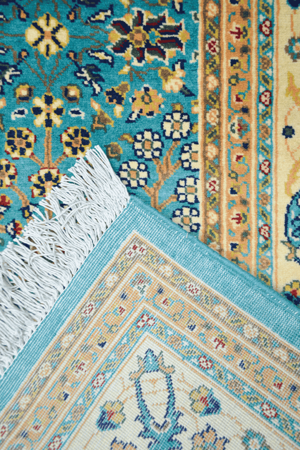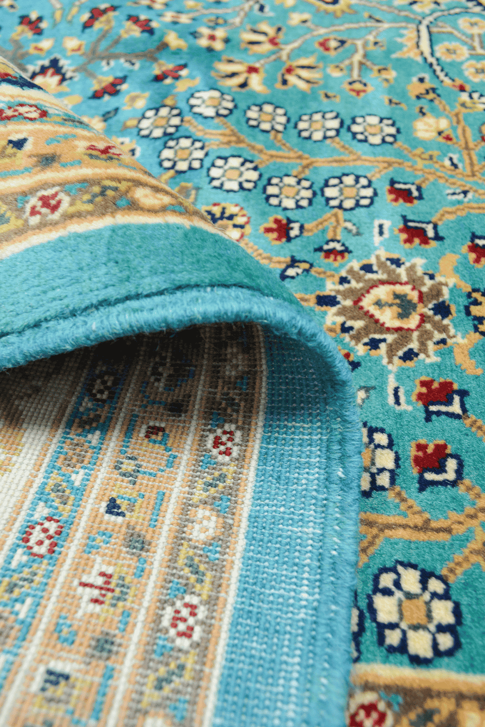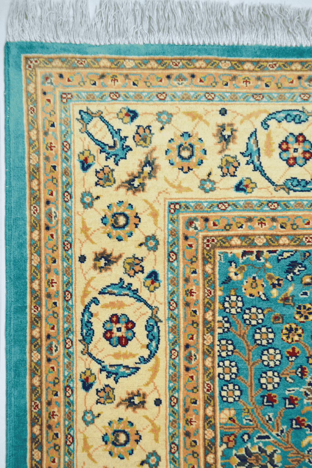 Klasik Hereke’nin simgesel desenlerinden Yedidağın Çiçeği motifi, bu halıda su yeşili renk tonlarıyla birleşerek zarif, yumuşak ve ferah bir görünüm sunar. 203x293 cm ölçüsü, geniş yaşam alanlarında dekoratif ve fonksiyonel kullanım sağlar.