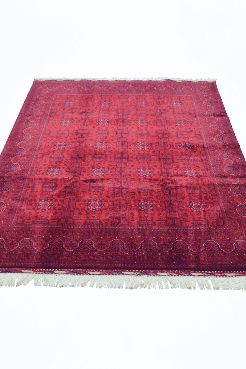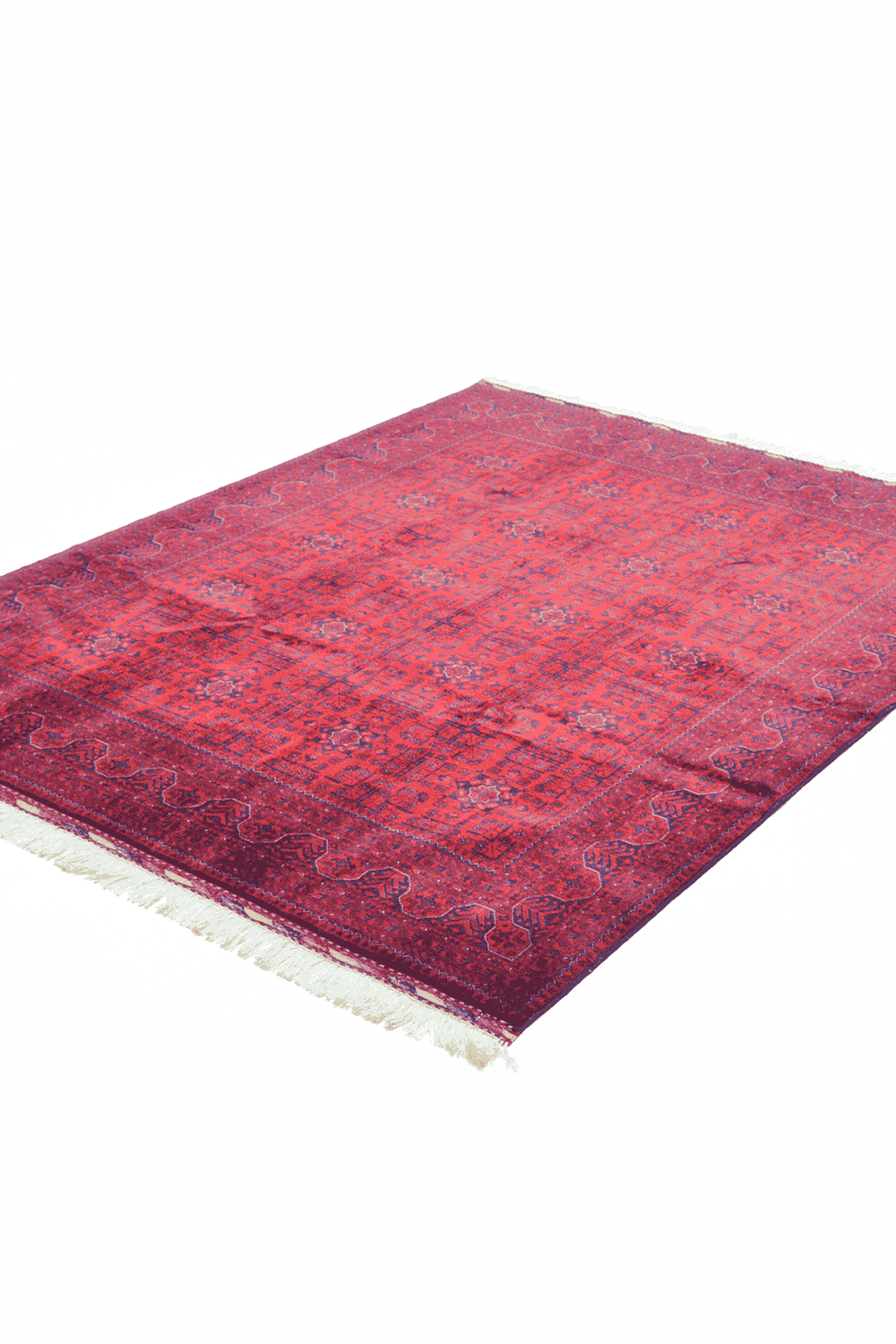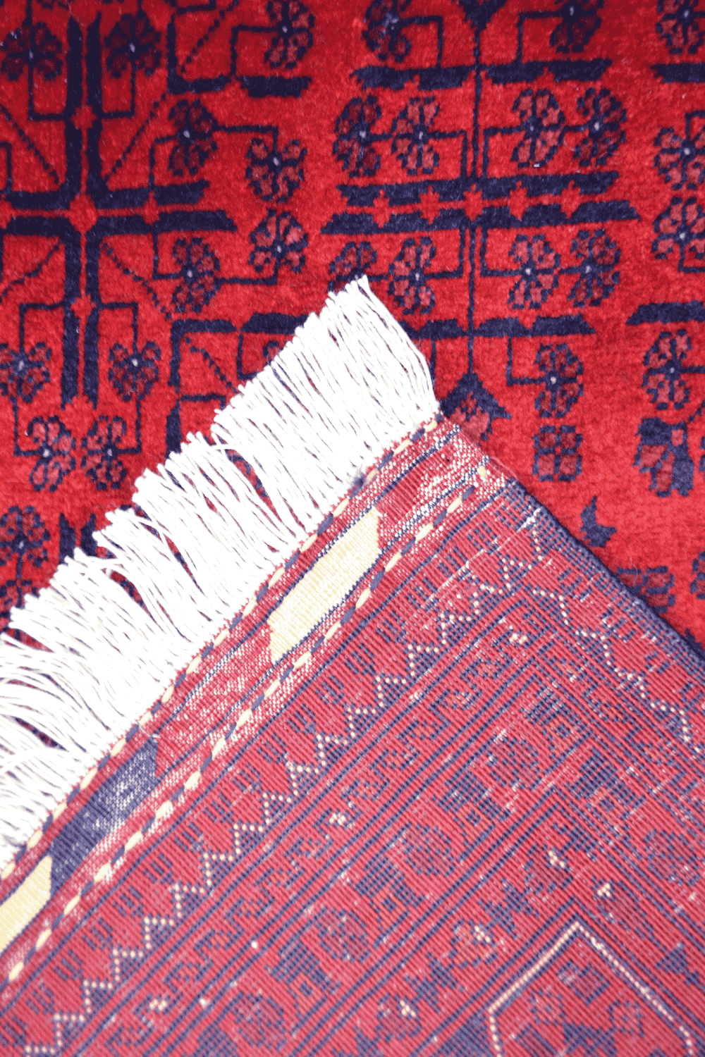 Bu Afgan Bilicik Halısı, tamamen yün ipliklerle el dokuma tekniğiyle üretilmiş olup, 50×50 düğüm sıklığı ile yüksek kaliteyi temsil eder. Yün saçak üzerine yün-kaşmir dokuma özelliği, halıya hem dayanıklılık hem de yumuşak bir dokunuş kazandırır. Canlı kırmızı rengi ile öne çıkan halı, 171x229 cm ölçüsüyle salon, oturma odası veya geniş yaşam alanlarında hem dekoratif hem fonksiyonel kullanım sağlar.