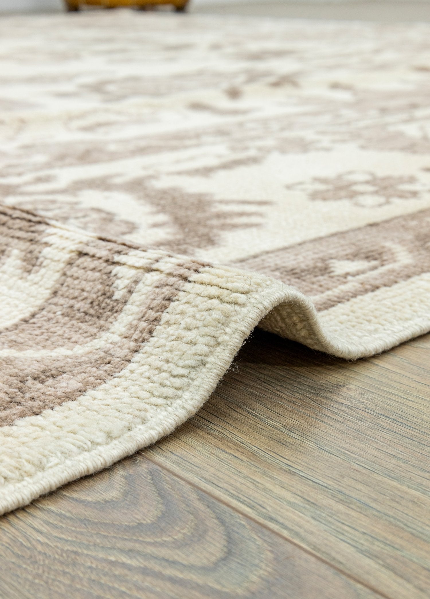 Gösterişli ve estetik tasarımlarıyla Soho Antiq halı modellerimiz, yaşam alanınıza yeni bir hava katacak! Uzun ömürlü halı modelimiz tamamen yünden oluşur ve özel el dokuma tekniği ile dokunmaktadır. Halı modelini özel yapan ve yıllar geçse de kaliteyi korumasını sağlayan becerilerle ürettiğimiz bu halı 1 ile 3 cm arası bir kalınlığa sahiptir ve boyu 299 x 353 cm’dir. Pek çok renk seçeneğine sahip halı modelleri içerisinden seçtiğiniz halının ana rengi kremdir. Ayrıca halı tasarımında bulunan diğer renkler kahverengi tonları ve bejdir. Soho Antiq içerisinde, kültürel ve geleneksel özelliklere sahip halılar bulunur. Geçmişten günümüze gelen bu halı modeli Anadolu tarihinden izler taşır ve özellikle Uşak yöresinden kültürel renk ve dokunuşlara sahiptir. Tüm bu geleneksel dokunuşları, halı üzerindeki yöresel uşak halısı deseninde görmek mümkün. El dokuması halılar uzun ömürlüdür ve zaman geçtikçe değerleri artar. Ek olarak el dokuma halılar, yaşam alanlarınızda bulunan ışıklandırmalardan dolayı renk farklılıkları gösterebilir ve bulundukları ortama farklılık katabilirler!