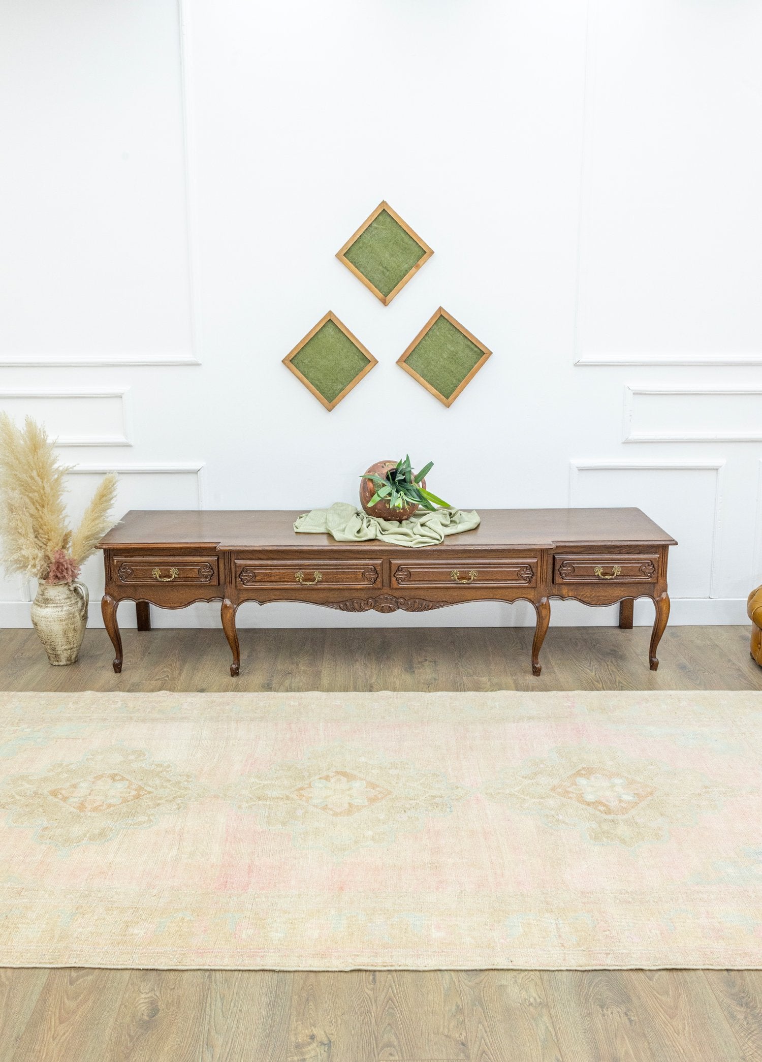 Soho Antiq el dokuma halı ve kilimleri, yaşam alanlarınızanefes katmak için tasarlanmıştır. Bu zarif el dokuma halı, özenle seçilmişyüksek kaliteli yün ve pamuk ipliklerinin ustalıkla bir araya getirilmesiyleoluşturulmuştur. Geleneksel el dokuma teknikleri kullanılarak üretilen halı,evinize sıcaklık ve zarafet katmak amacıyla özel olarak tasarlanmıştır. Renkpaleti, doğanın yumuşak tonlarından ilham alınarak oluşturulmuş olup, bej ve passtel pembe renklerinin uyumuyla dikkat çekerken halı içerisinde bulunan diğer renkler ileuyumu yakalamaktadır. Halı, deneyimli el sanatçıları tarafından özenle dokunmuşve İç Anadolu yöresine özgü geleneksel tekniklerle 1970’lerde üretilmiştir, bu da halıyakültürel bir derinlik katmaktadır. Halının ebatı 148 x 316 cm olarak ölçülmüştürve bu ölçü, halının farklı yaşam alanlarına kolaylıkla uyum sağlamasını sağlar.Halının kalınlığı ise 1 - 3 cm arasındadır. Estetik değerinin ötesinde, bu eldokuma halı, evinize özgünlük ve geleneksel bir his katma konusunda öneçıkmaktadır.