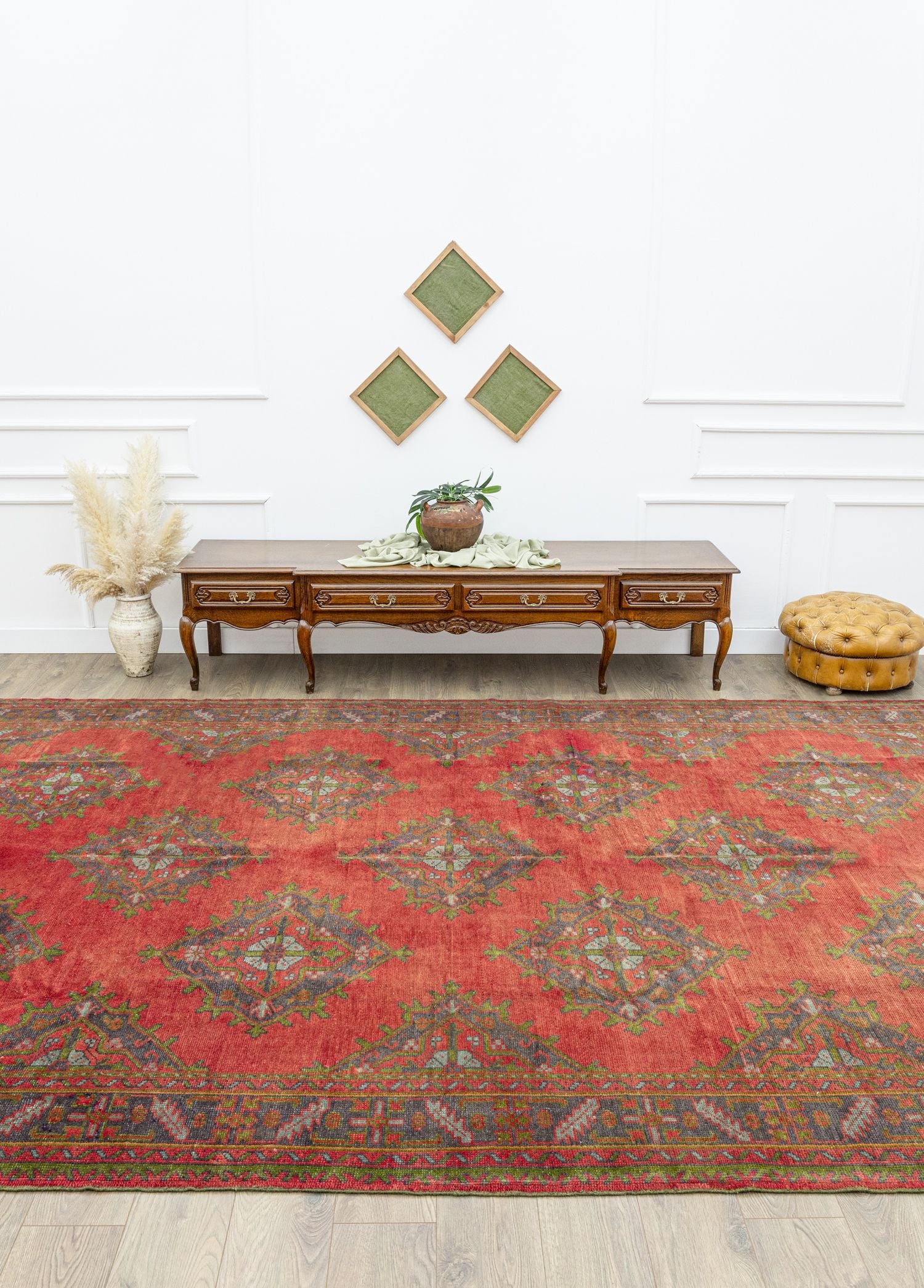 Soho Antiq el dokuma halı ve kilimleri, yaşam alanlarınızanefes katmak için tasarlanmıştır. Bu zarif el dokuma halı, özenle seçilmişyüksek kaliteli yün ipliklerinin ustalıkla bir araya getirilmesiyleoluşturulmuştur. Geleneksel el dokuma teknikleri kullanılarak üretilen halı,evinize sıcaklık ve zarafet katmak amacıyla özel olarak tasarlanmıştır. Renkpaleti, doğanın yumuşak tonlarından ilham alınarak oluşturulmuş olup, kırmızı, yeşil ve lacivert renklerinin uyumuyla dikkat çekerken halı içerisinde bulunan diğer renkler ileuyumu yakalamaktadır. Halı, deneyimli el sanatçıları tarafından özenle dokunmuşve Uşak yöresine özgü geleneksel tekniklerle 1940'larda üretilmiştir, bu da 80 yaşında olan halıyakültürel bir derinlik katmaktadır. Halının ebatı 267 x 409 cm olarak ölçülmüştürve bu ölçü, halının farklı yaşam alanlarına kolaylıkla uyum sağlamasını sağlar.Halının kalınlığı ise 1 - 3 cm arasındadır. Estetik değerinin ötesinde, bu eldokuma halı, evinize özgünlük ve geleneksel bir his katma konusunda öneçıkmaktadır.