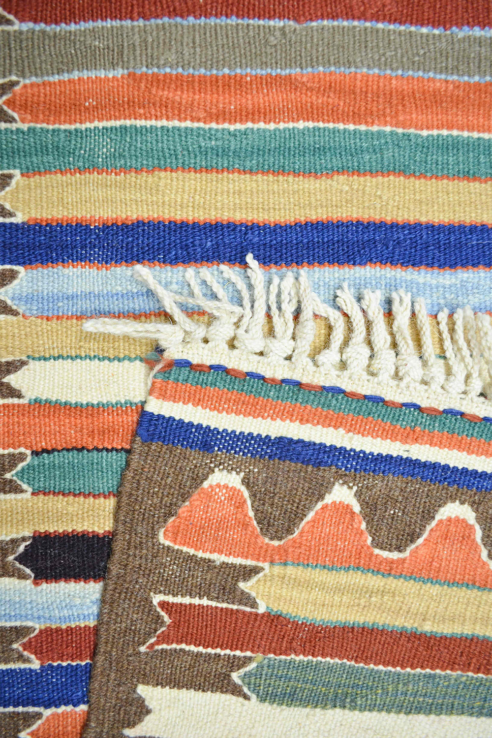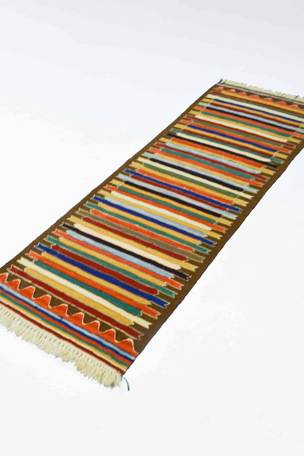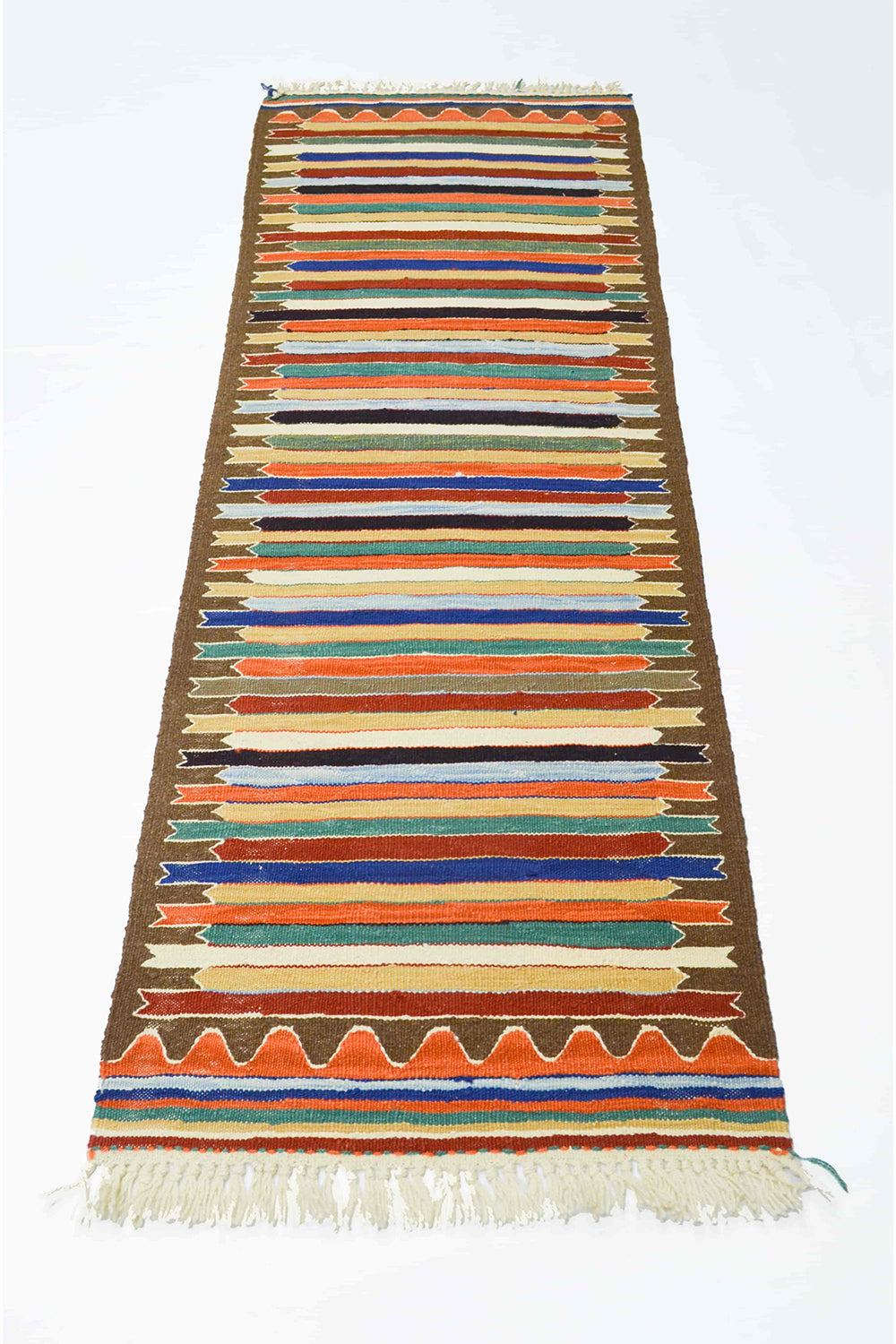 Yünden El Dokuma Çizgili Uşak Kilim Yolluk 58x173 Cm (1 M²)