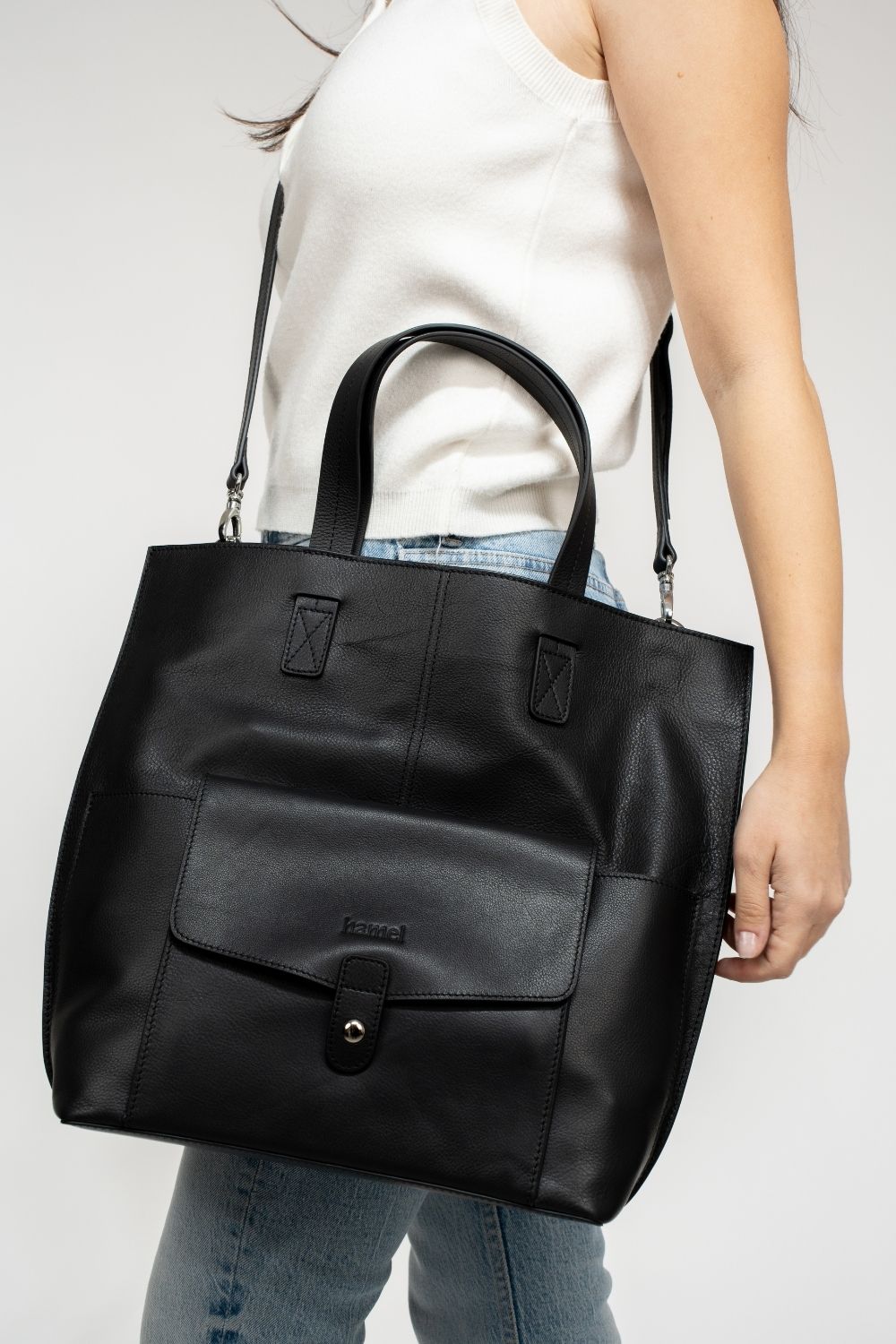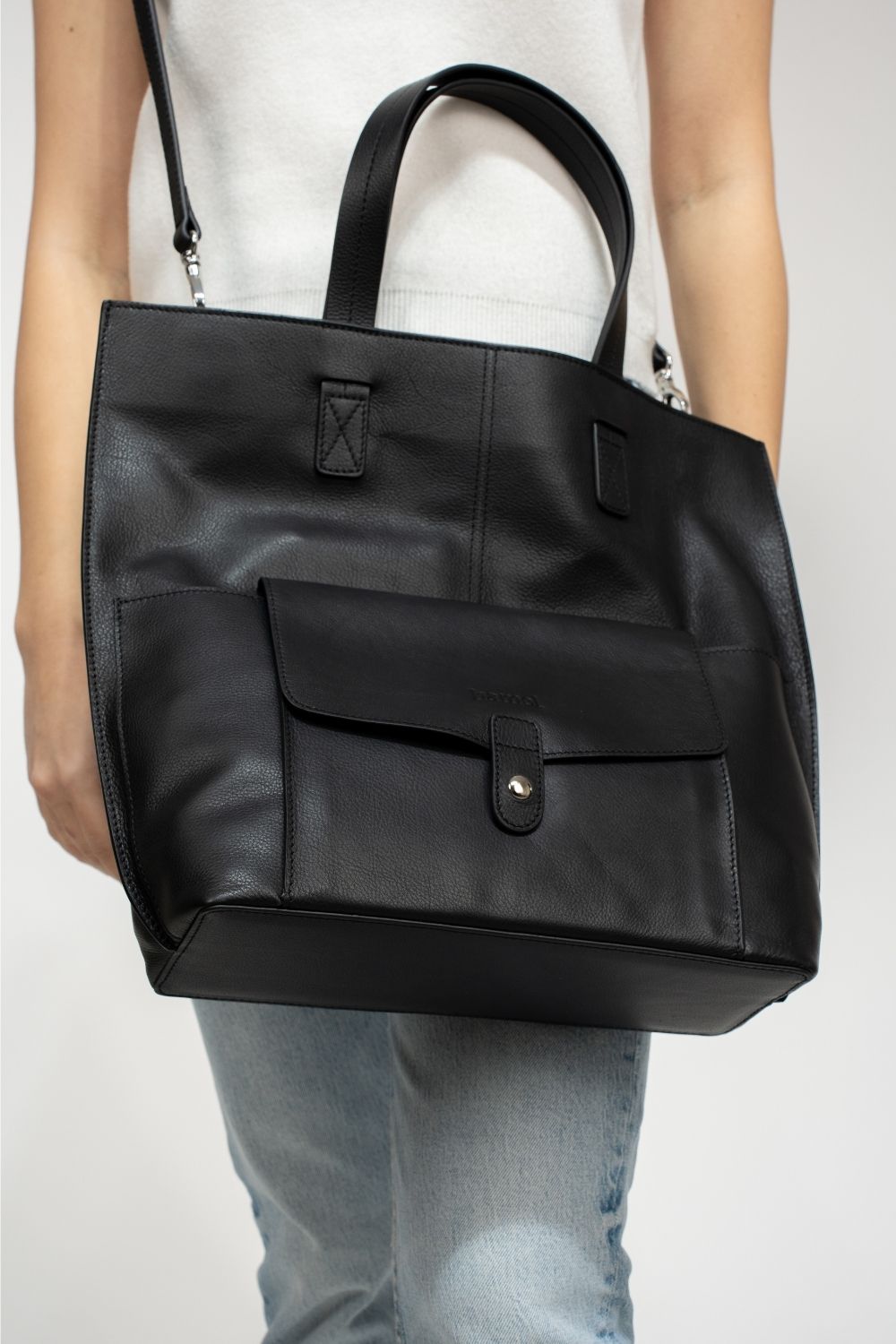 Dayanıklı ve şık bir görünüm için siyah %100 hakiki dana derisinden üretilen lüks Goya Çanta ile tanışın. Bu geniş çanta, fermuarlarla uğraşmadan eşyalarınıza kolay erişim sağlayan manyetik ön cebe sahiptir. Ayarlanabilir askıları çıkarılarak elde taşınabilir hale getirilebilir, bu da her duruma uygun çok yönlülük sağlar. İster günlük işlerinizi hallediyor olun ister gece dışarı çıkıyor olun, Goya Çanta her kıyafet için mükemmel bir aksesuardır.