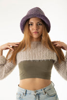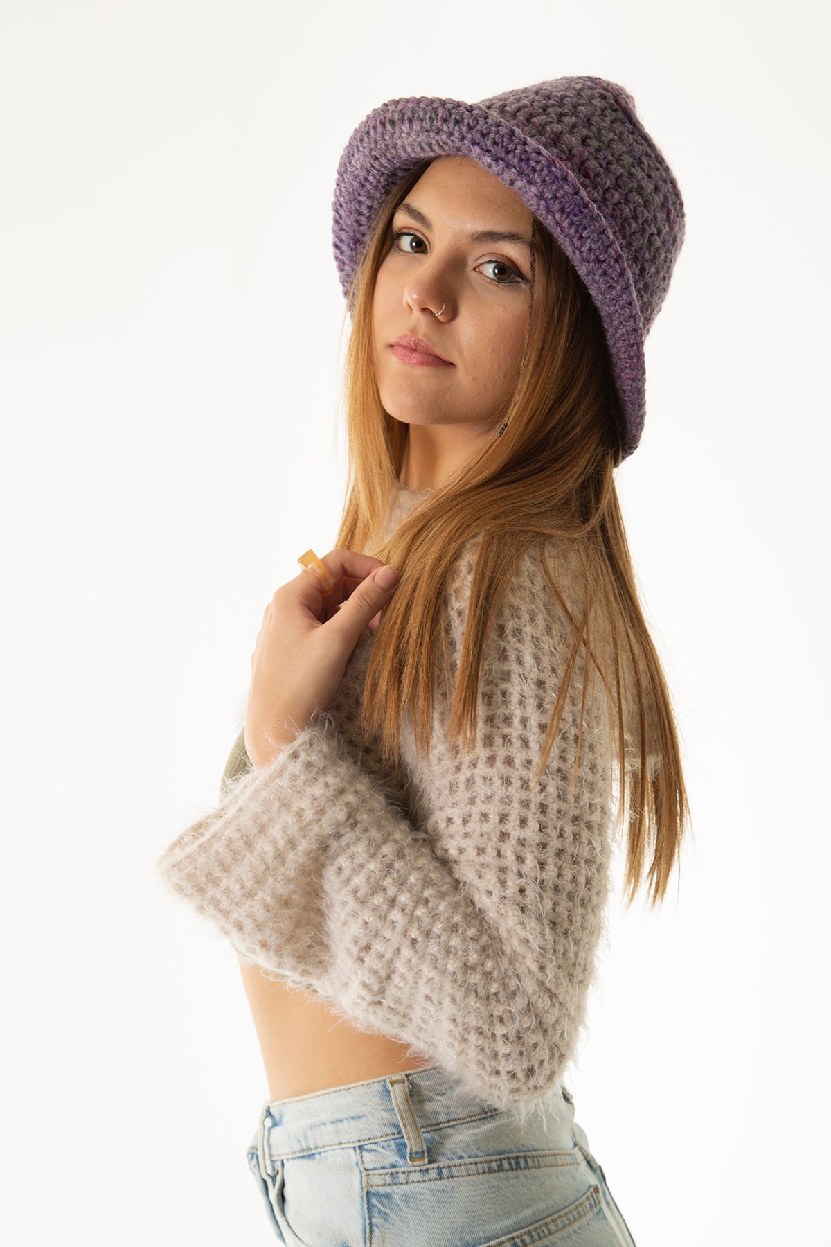 Kırçıllı Mor El Örgüsü Bucket Şapka