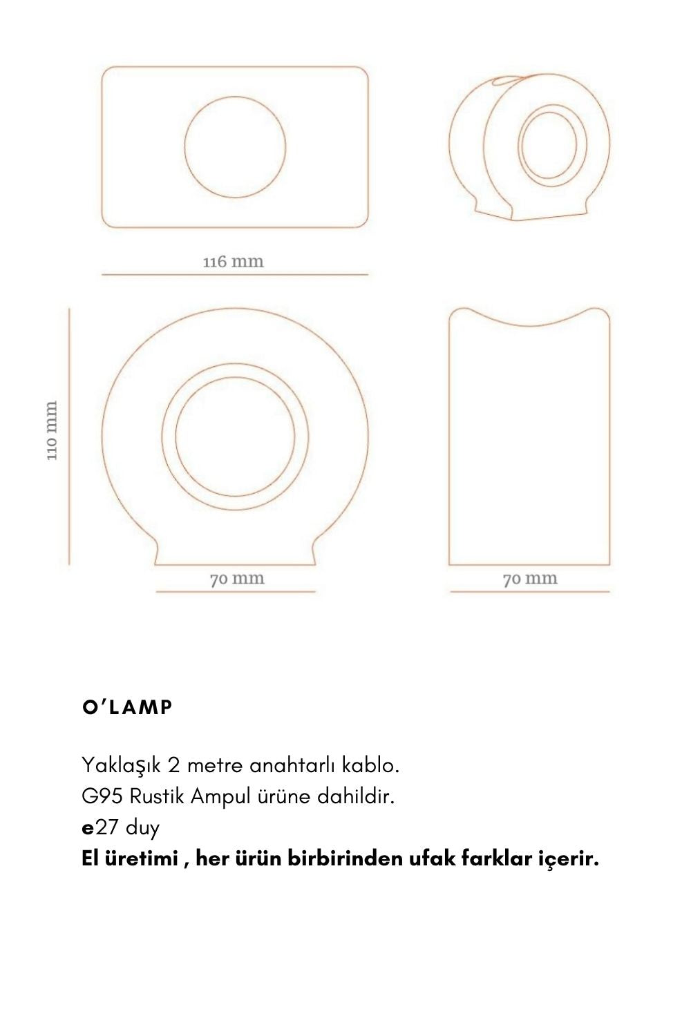 Ampul ürüne dahildir. Fotoğraf çekiminde kullanılan aksesuarlar ürüne dahil değildir. ( Görseldeki ampul kodu G95 )