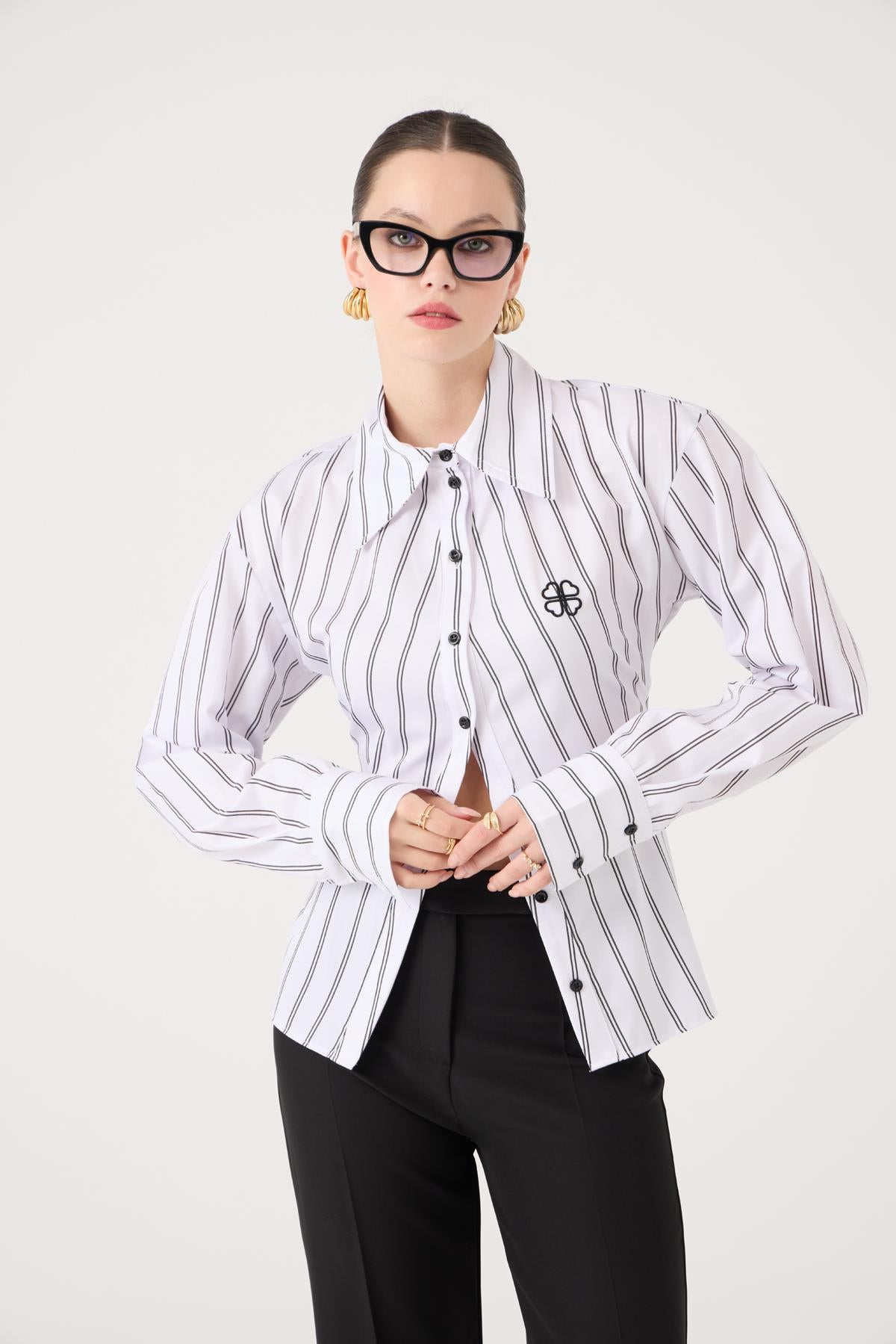Modern kesimiyle şık ve zamansız bir siluet sunan bu gömlek, her sezona uyum sağlayan kurtarıcı bir parçadır.