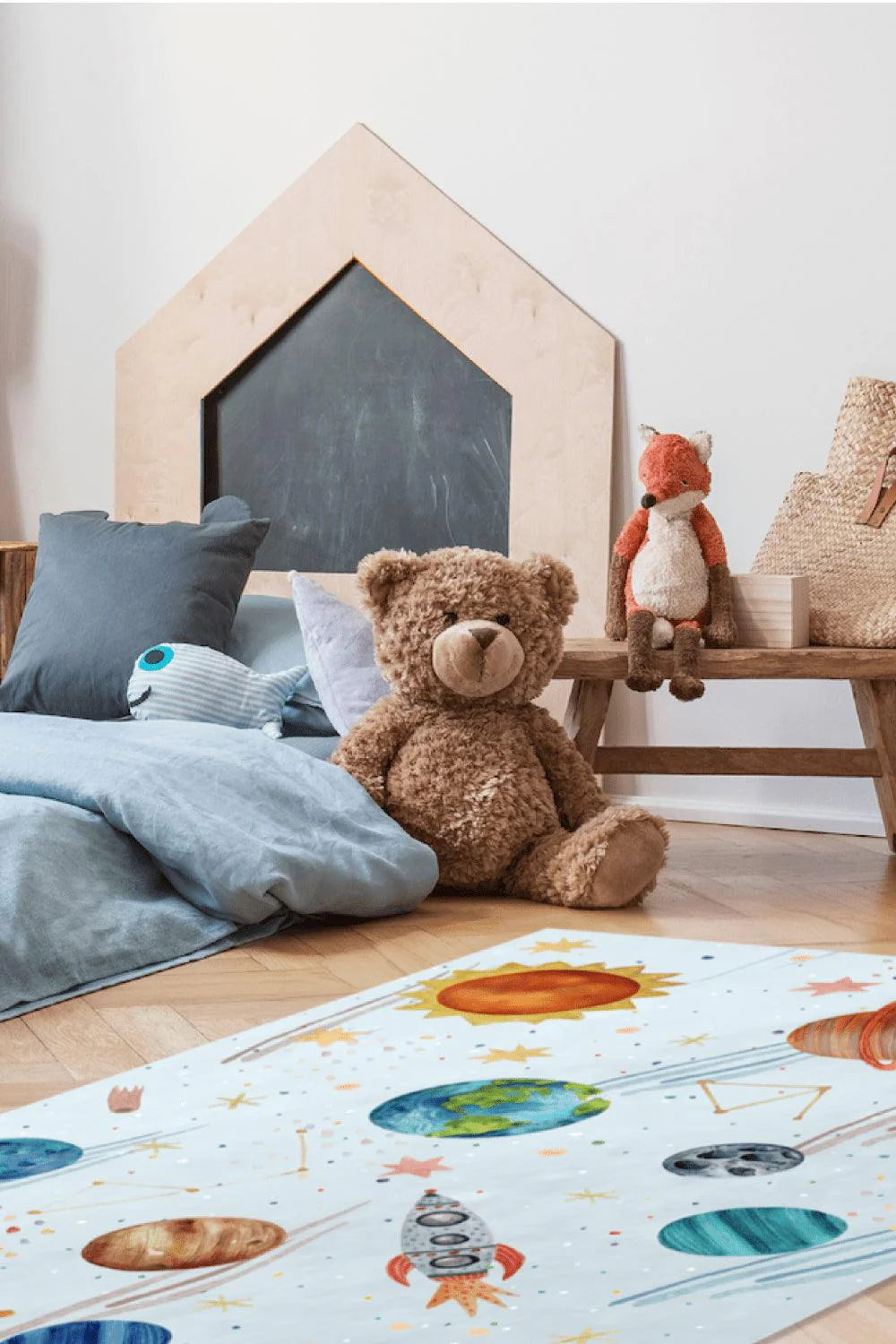 Give Me Some Space Makinede Yıkanabilir Non-Toksik Çocuk Odası Halısı