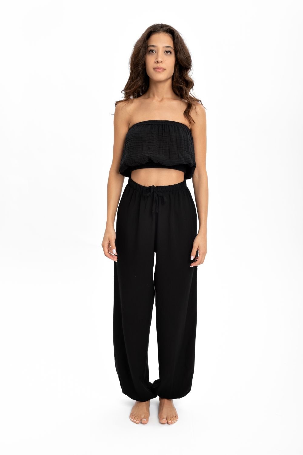 Ayrıca ev içi veya ev dışı her türlü kombinle de uyum gösteriyor. Vücudunuzun nefes almasını sağlayan doğal içeriğe sahiptir. Kendinizi zarif hissetmek için hoş ve akıcı.