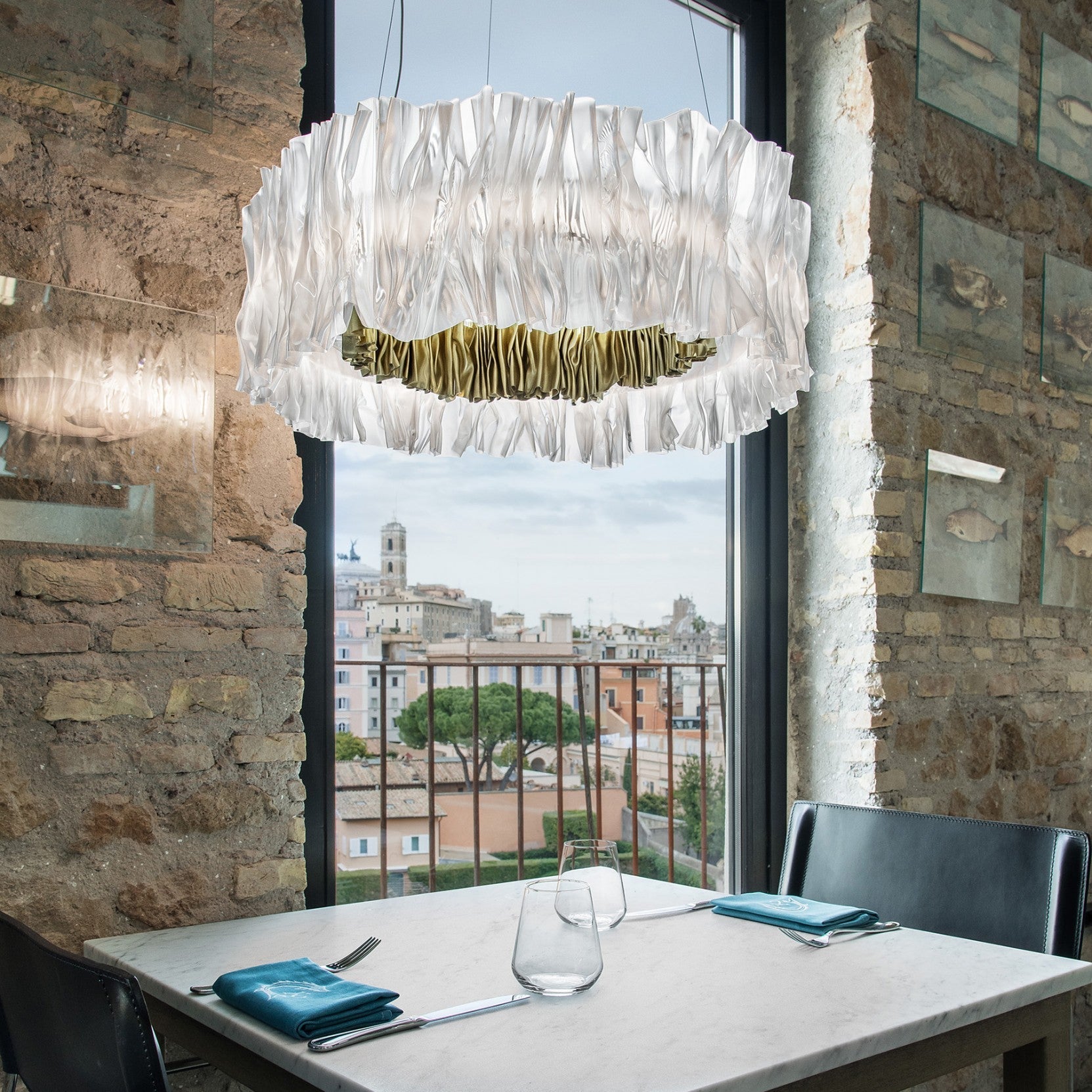 Slamp'ın teknopolimerlerinin sonsuz olanaklarını Accordèon ile keşfederek tekstil plisesi veya akordeon körüğü imajını yaratıyor. Koleksiyon, tasarımı, modayı, zanaat tekniğini ve teknolojiyi kalıcı bir etkileşim içinde gören yeni çağdaş anlatının kesin bir işaretidir.