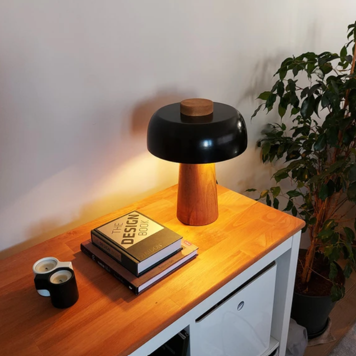 Atolye tarafından ahşap gövde ve metal başlık ile satışa sunulan masa lambası farklı renklerle sunulmaktadır.