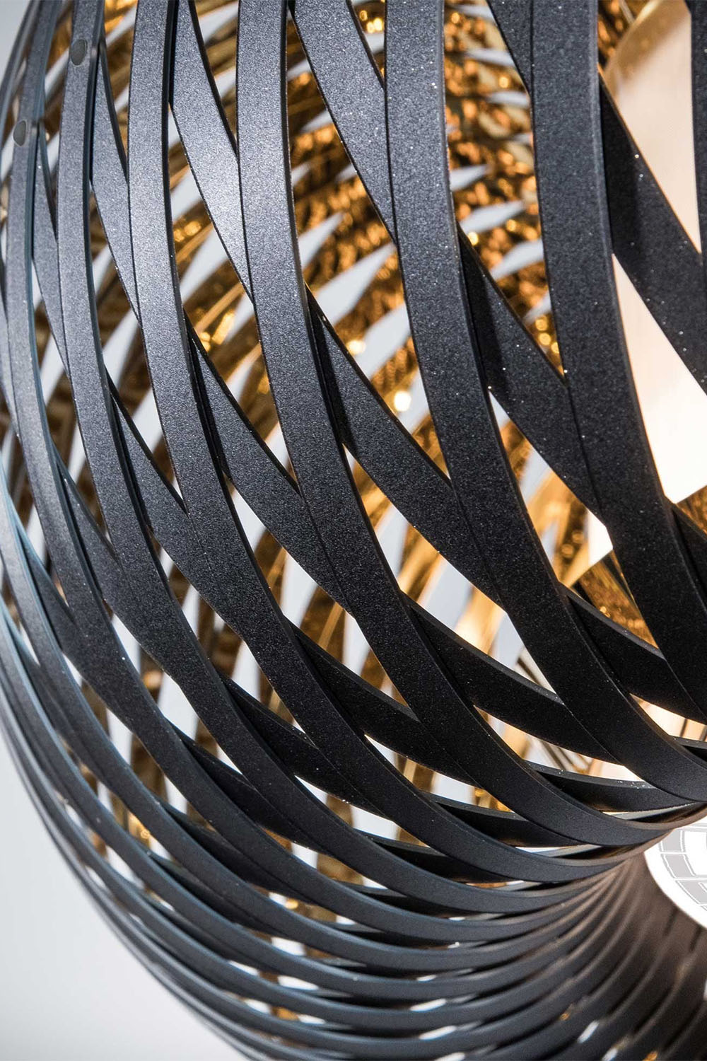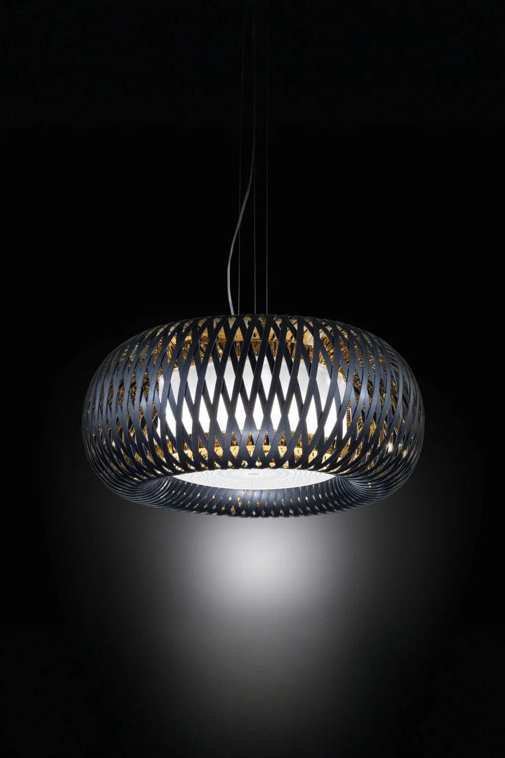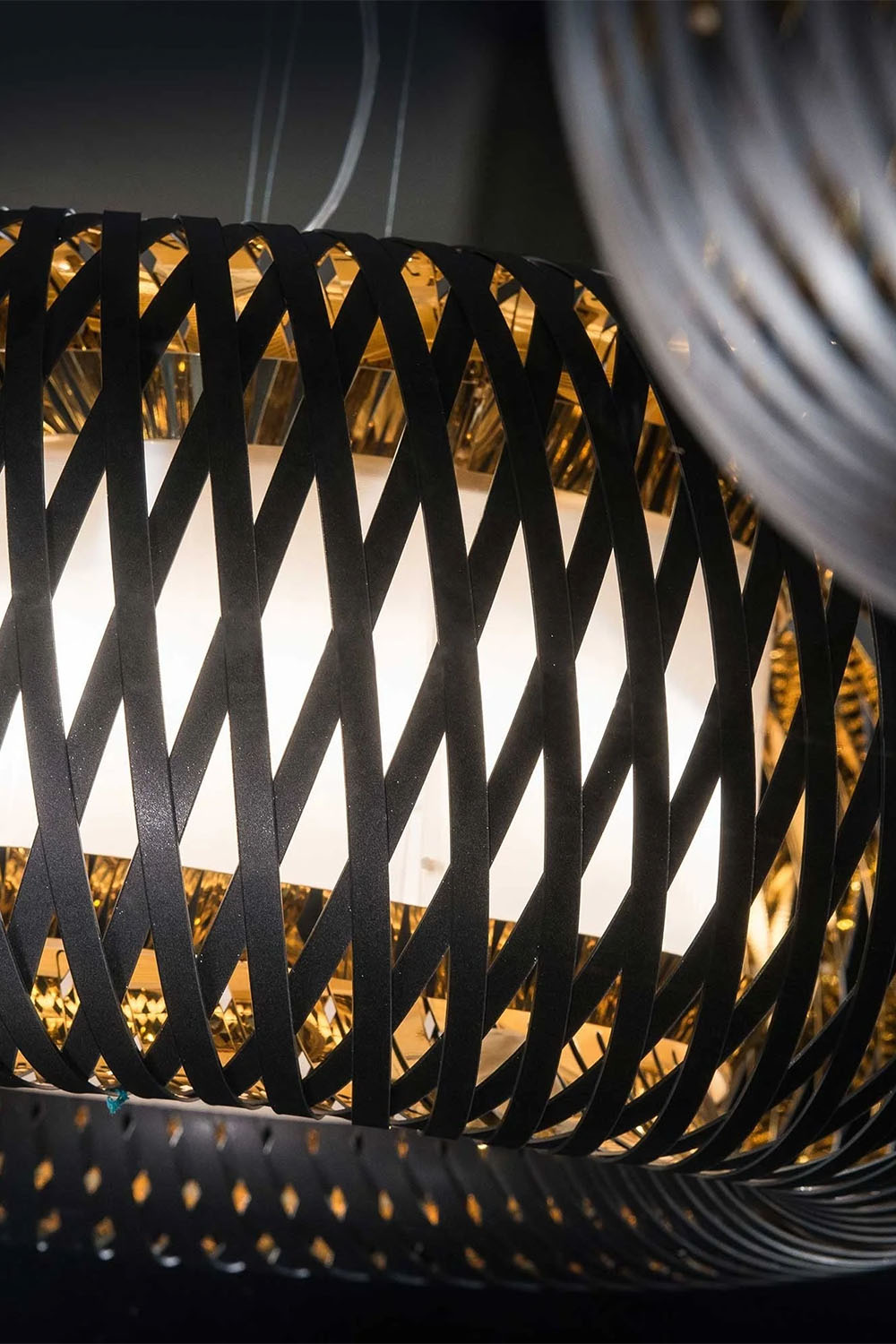 Sepetler ve kamış çuvalları şeklinde tarih öncesi çağlardan beri insanlığın bir parçası olan dokuma sanatından ilham alan Kalatos, Slamp'ın gelişmiş teknopolimerlerini kullanarak bu arketipleri modern bir yaklaşımla yeniden ele alıyor; Koleksiyonun hem asma hem de tavan versiyonları bulunuyor. İki renk kombinasyonuyla sunulurlar: iç kısmı altın kaplamalı mat siyah veya şeffaf Lentiflex kaplamalı beyaz.