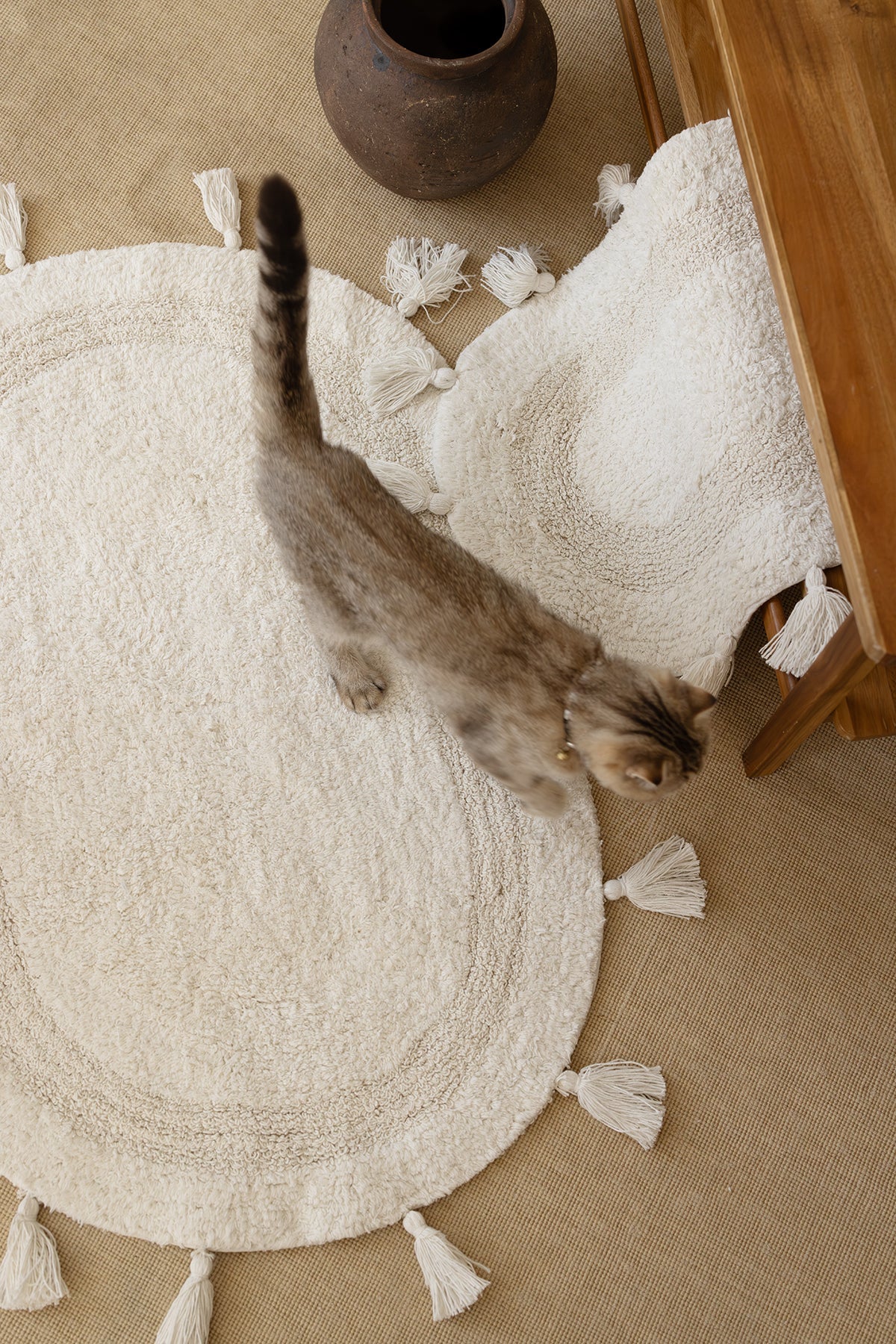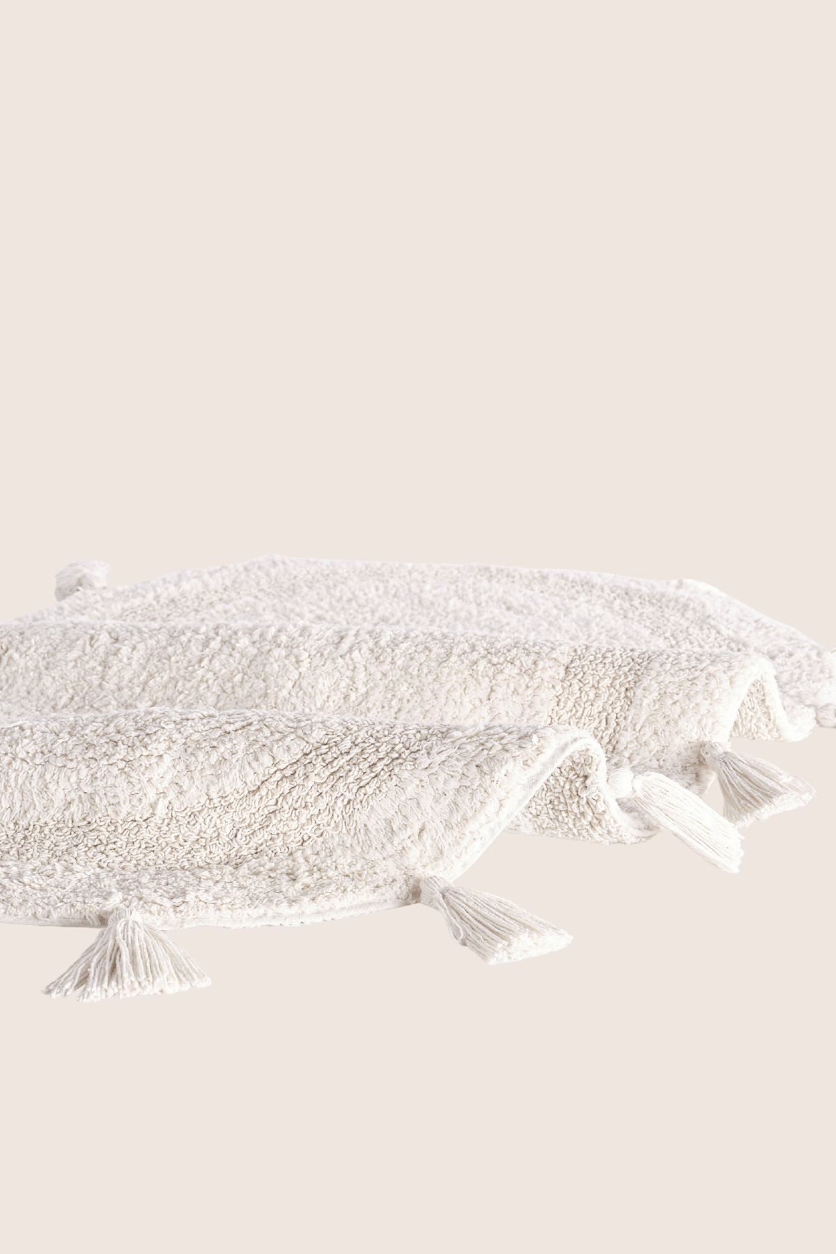 Zarif püskülleri, oval formu ve yumuşak tonları ile Hana banyo paspasımız, banyonuza yumuşak bir dokunuş ekliyor. El emeği ile dikilen püskül detayları ile özenle sizin için tasarlandı.