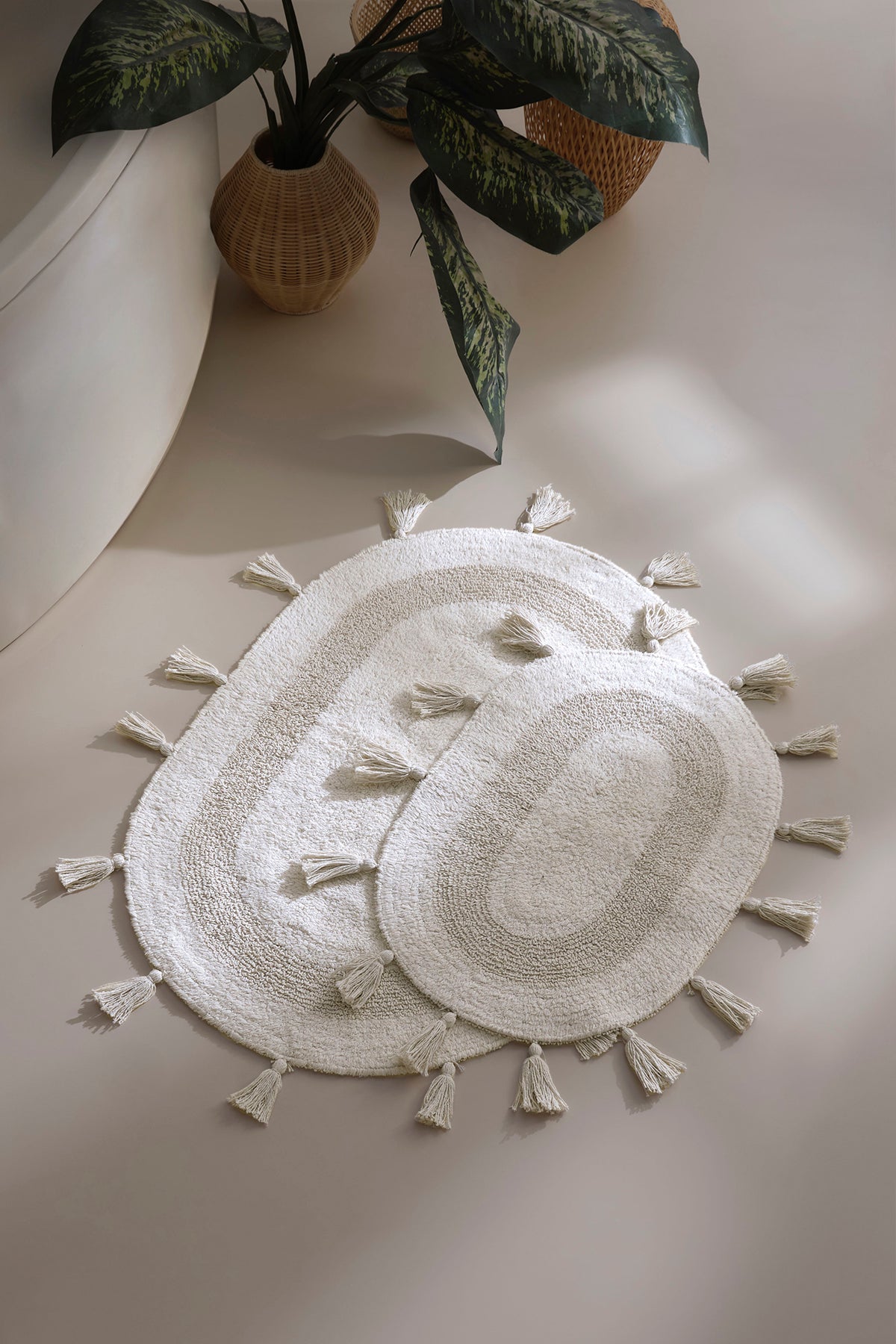 Hana 2’li Takım Banyo Paspası %100 Pamuk 40x60 + 60x90 Ekru