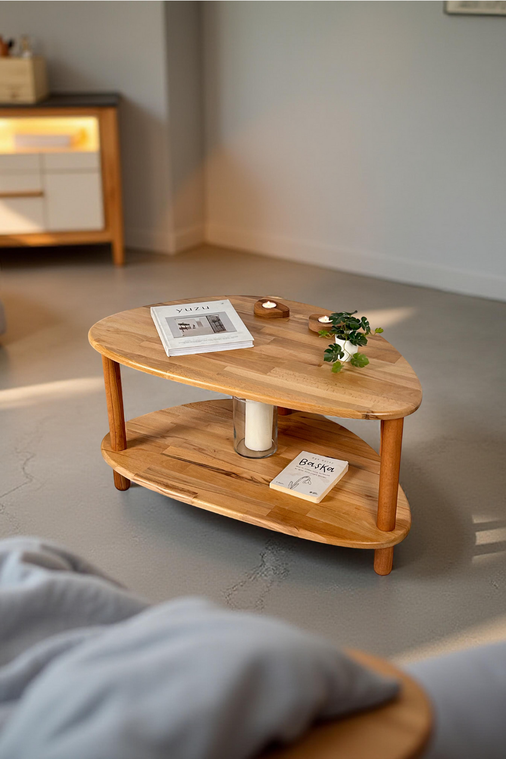Soren Orta Sehpa - Masif Ahşap İki Raflı Modern Sehpa