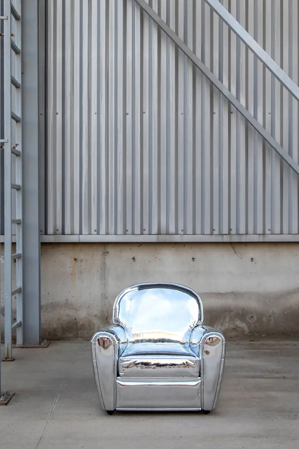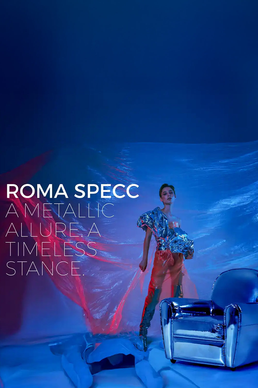 Yüksek parlaklıkta metalik deriyle kaplanan Specchio, klasik Roma berjer silüetini radikal bir tavırla yeniden tanımlıyor.