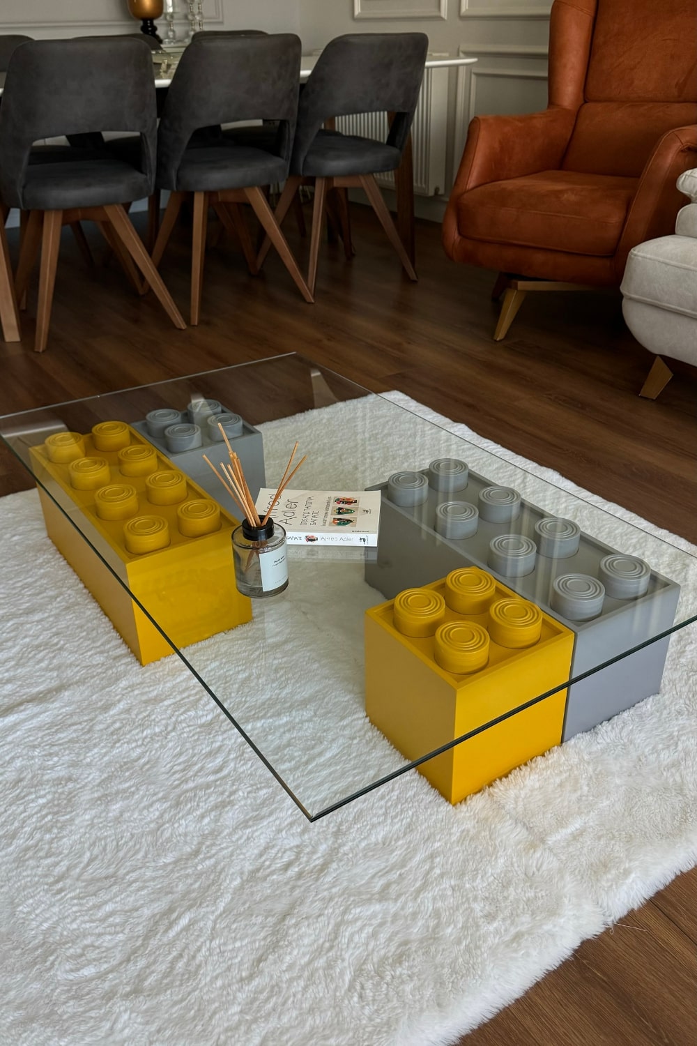 Elara Lego Görünümlü Cam Orta Sehpa