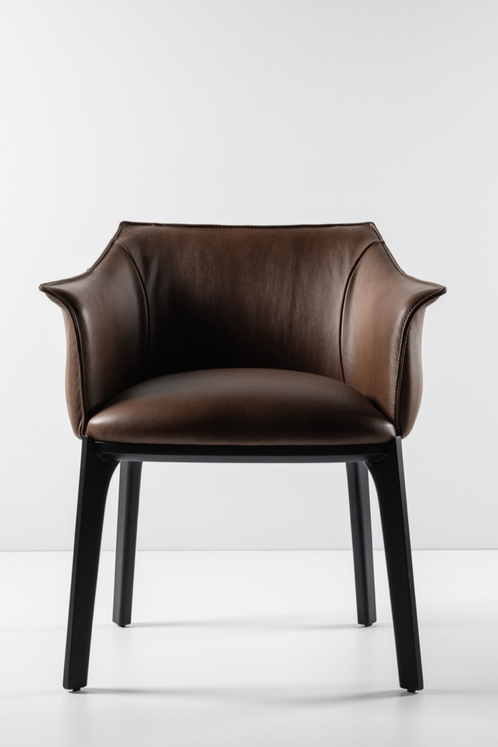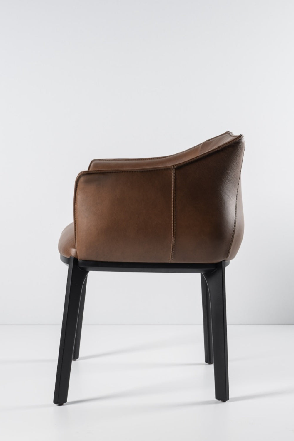 Yüksek kaliteli deri kaplaması ve sağlam yapısı sayesinde, bu sandalye kullanıldığı ortamın odak noktasına dönüşür. Hem evlerinize samimi bir hava katar hem de ofis ya da bekleme alanları gibi profesyonel mekânlarda lüks bir izlenim bırakır.
