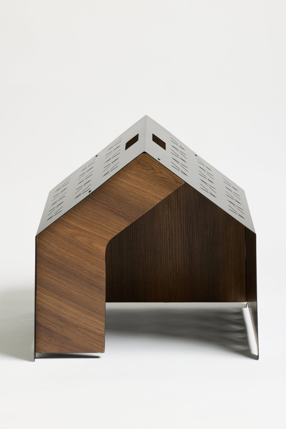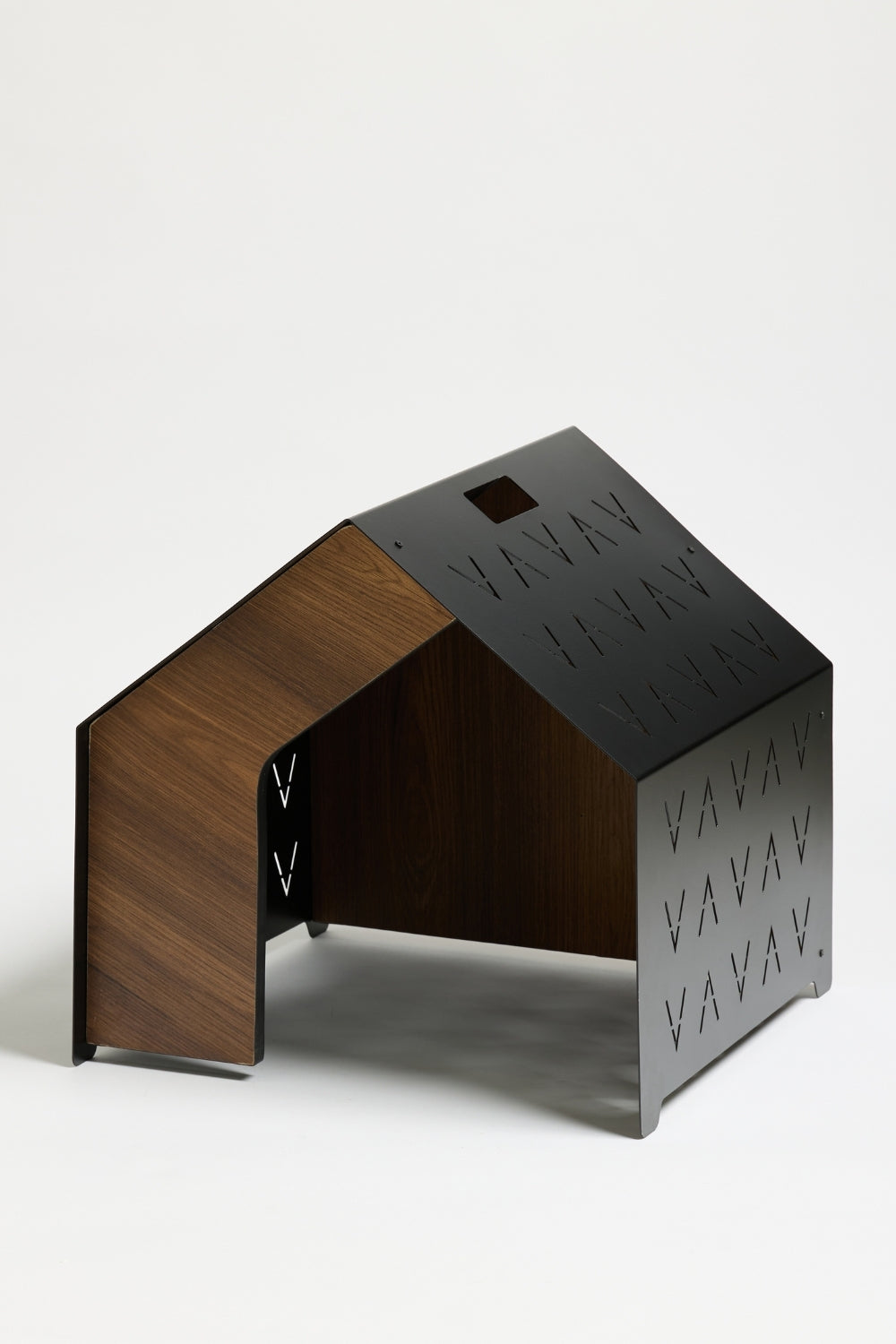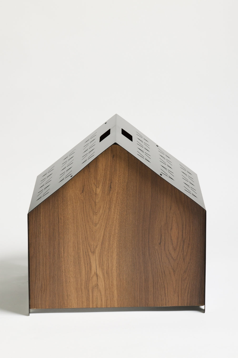Tarz ve İlham:Vidar Kedi & Köpek Evi, iskandinav tasarımının sadeliği ve işlevselliğinden, doğanın sıcaklığı ve ev kavramının temelinden ilham alıyor. Evcil hayvanlarımızın da kendi özel alanlarına, güvenli ve konforlu bir sığınağa ihtiyaç duyduğu gerçeğinden yola çıkarak, insan yaşam alanlarıyla bütünleşebilen estetik bir yuva yaratmayı amaçladık. Ürünün formu, basit ev çizimlerinden, çatısı altında toplanan aile figüründen ve huzur veren yuva hissinden esinlenilmiştir. Ahşap ve metalin kontrastı, doğal ve endüstriyel elementlerin dengesini yansıtırken, delikli desenler havayı ve ışığı içeri alarak iç mekana nefes aldıran bir "pencere" görevi görür.